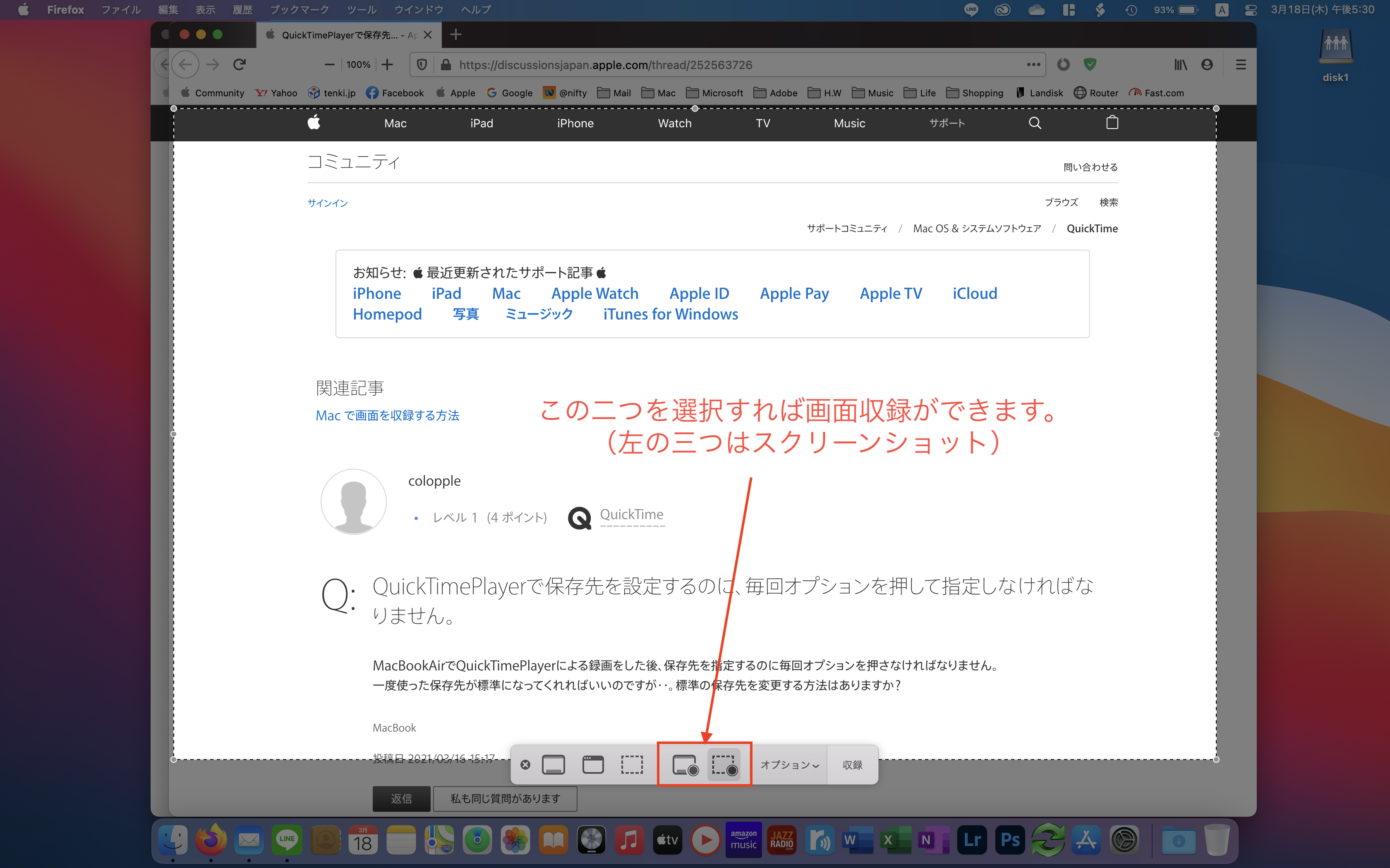 > QuickTime Playerで画面収録すると保存先を覚えてくれません