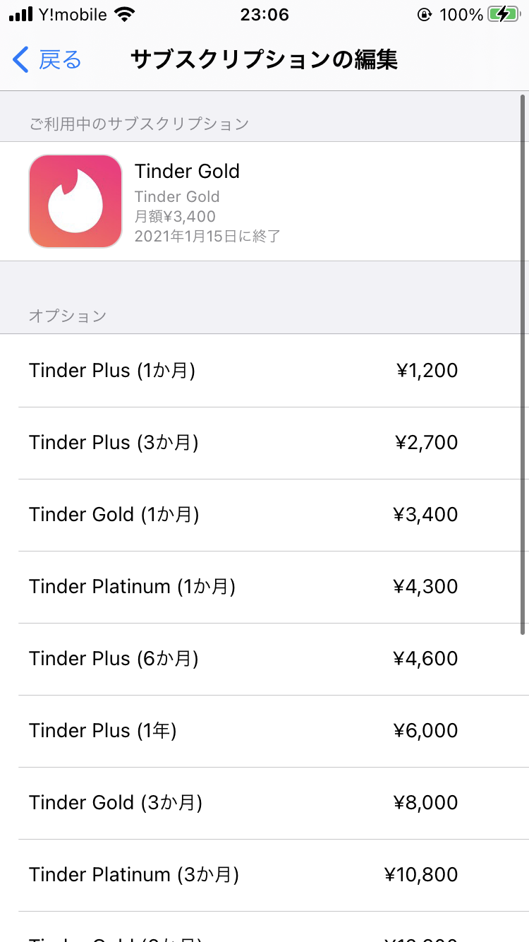 すみません。1/15まで有効だったので現在は購入してないですね。やすどんさんのおっしゃる通りでした。キャンセル方法も分かったのでだいぶ解決しましたが最後に、現在もサブスクリプションにtinder goldが表示されるのは何故なんでしょうか。毎月メールが来るのでiTunesに金入れて放置した場合もしかして自動購読で金取られるんじゃないかと心配です