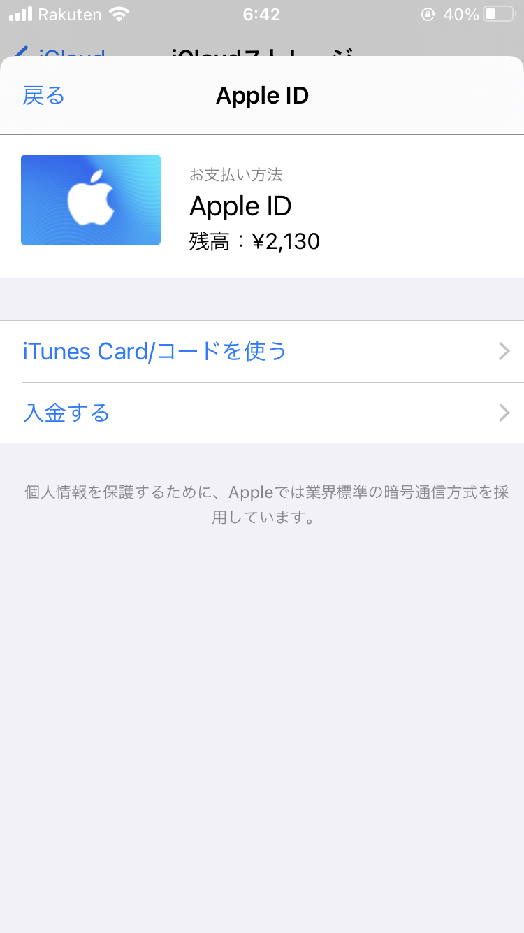 iCloud ストレージのアップグレードを Apple ID の残高でお支払いできないということですね。