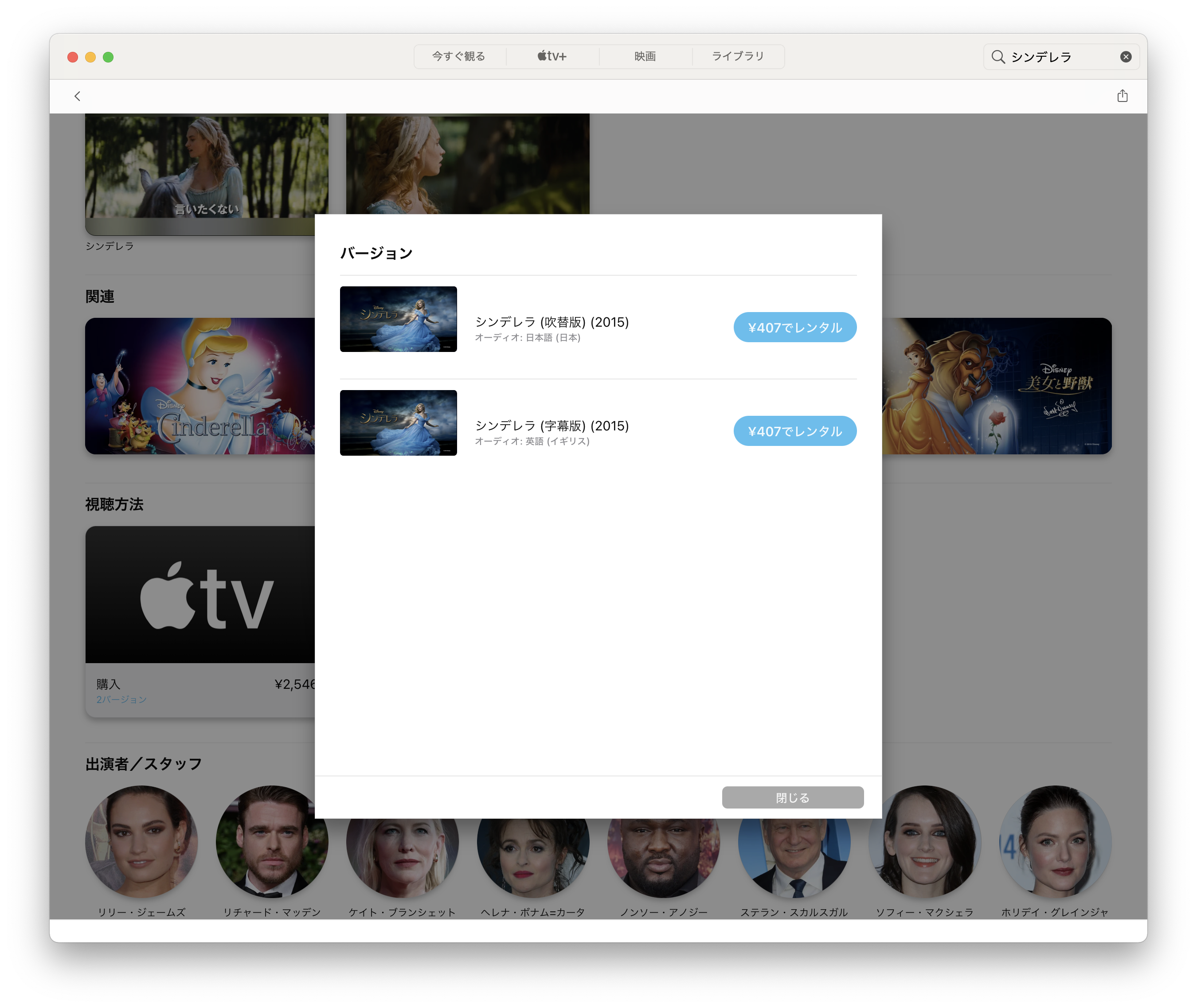 ディズニー実写版「シンデレラ」:吹替版を選択再生。
