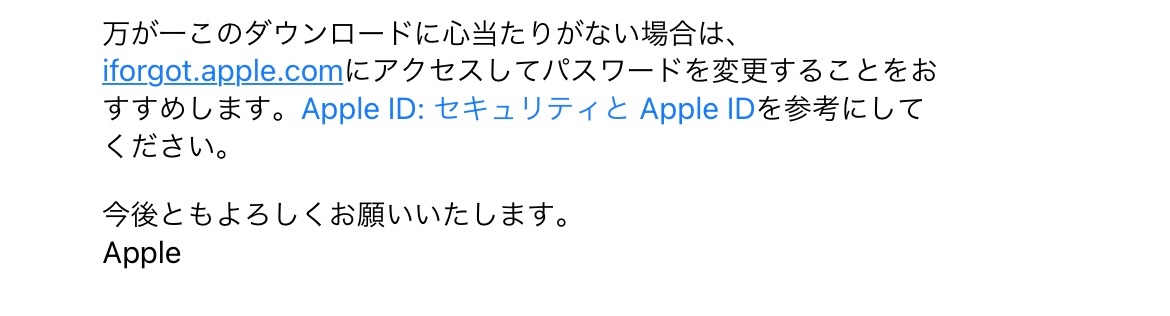ご利用のApple ID(iCloudのアドレス)は先ほど、これまで使用されたことのないコンピュータまたはデバイス上で、「@@itemName@@」をダウンロードするために使用されました。