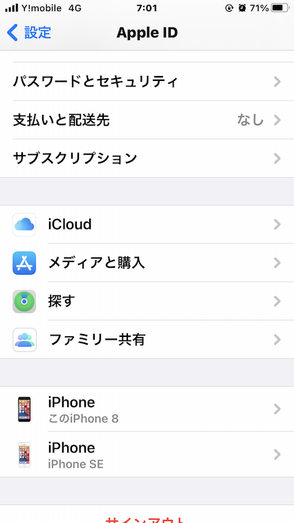 同じApple IDでサインインしている端末(iPhone8)