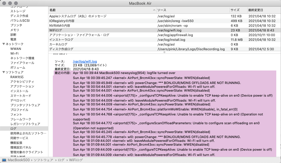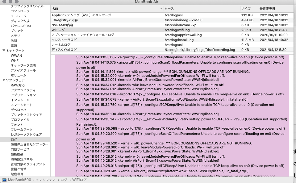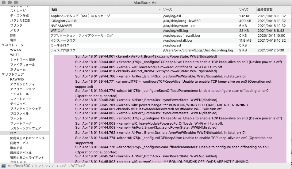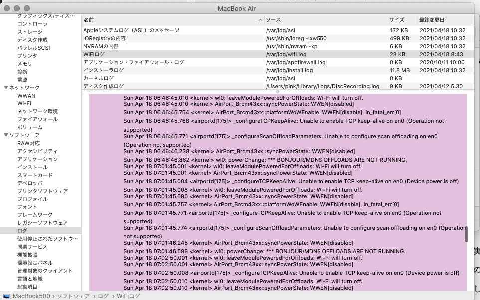 さらに同じ日に2回ログ更新しているし・・・・このmacが人工知能を持って隠蔽工作に動いているのかもしれません(希望的観測)?。