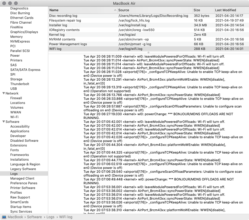 <airport[190]> _configureTCPKeepAlive: Unable to enable TCP keep-alive on en0 (Device power is off)