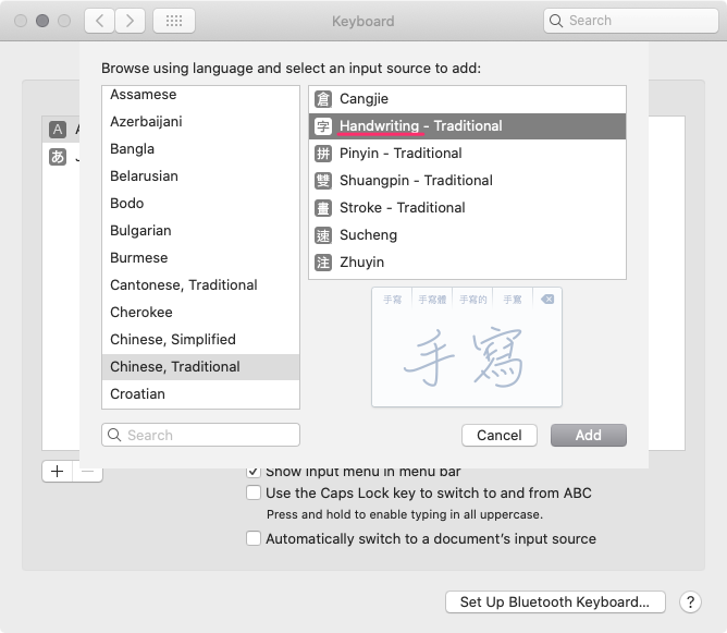 Macの「トラックパッド手書き認識」の入力ソースについて