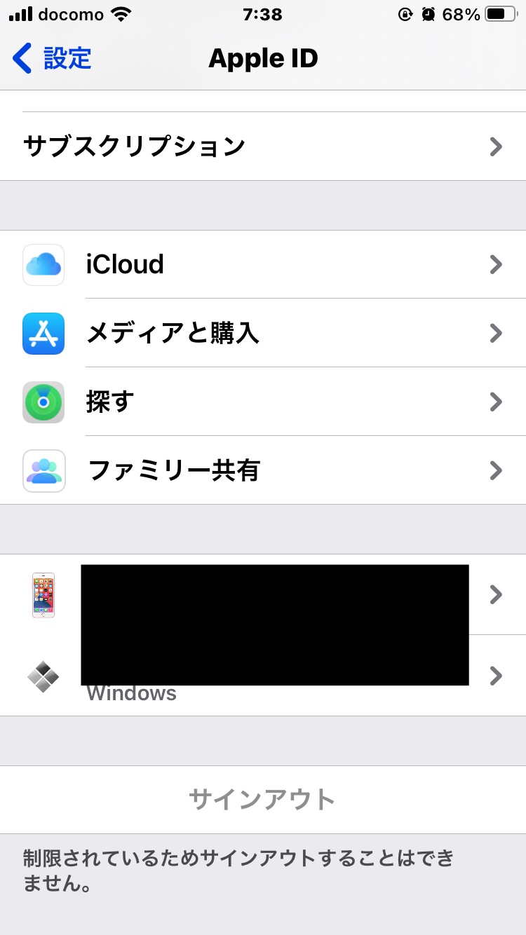 制限されているためサインアウトできないと表示が出ていてサインアウトできない状態です。