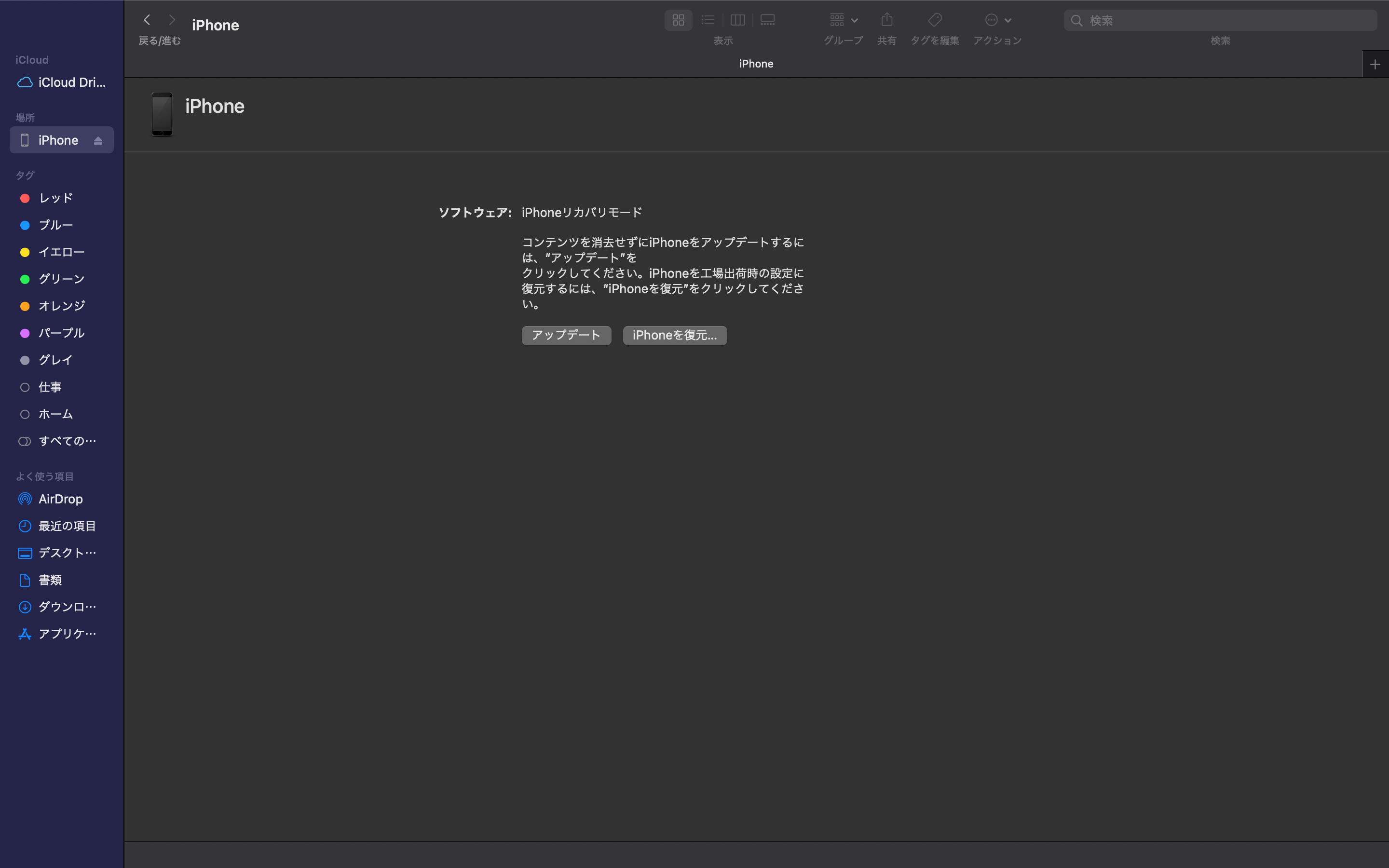 完了後iPhoneの初期設定に入りましたが、アクティベートをするためにはアップデートが必要らしく、その為に再度同様にリカバリーモードをして今度はアップデートを選択しました。
