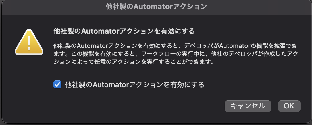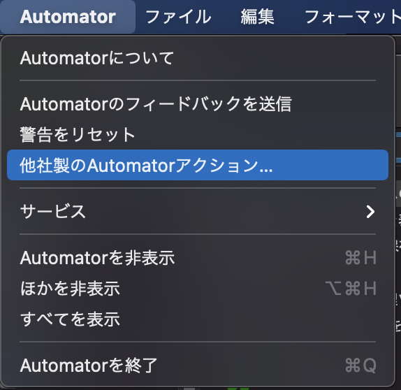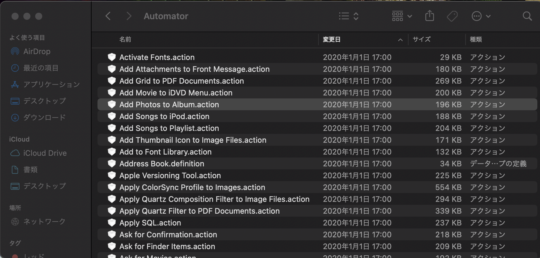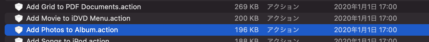 ・アクションをAutomator内で確認したところ、下記のようになっていました。