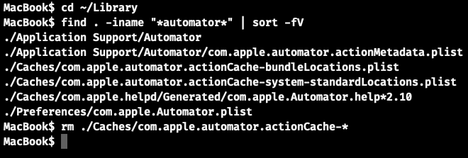 Automator関連ファイルには下記のものがあります。com.apple.automator.actionCache-*の中身を見ると、各々のアクションの情報がリストアップされていました。このファイルが壊れていた場合、誤動作するかもしれません。一度、削除して貰っていいですか?