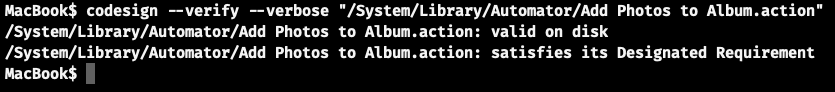 codesign --verify --verbose "/System/Library/Automator/Add Photos to Album.action"