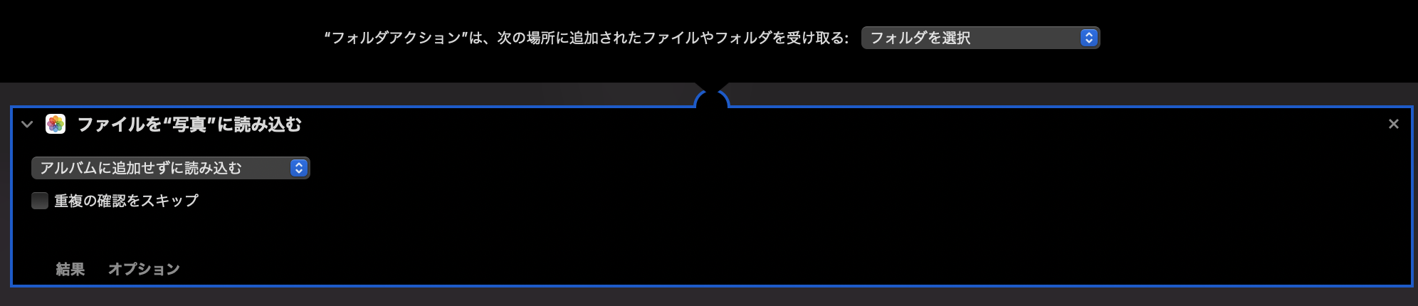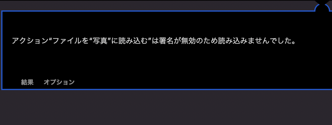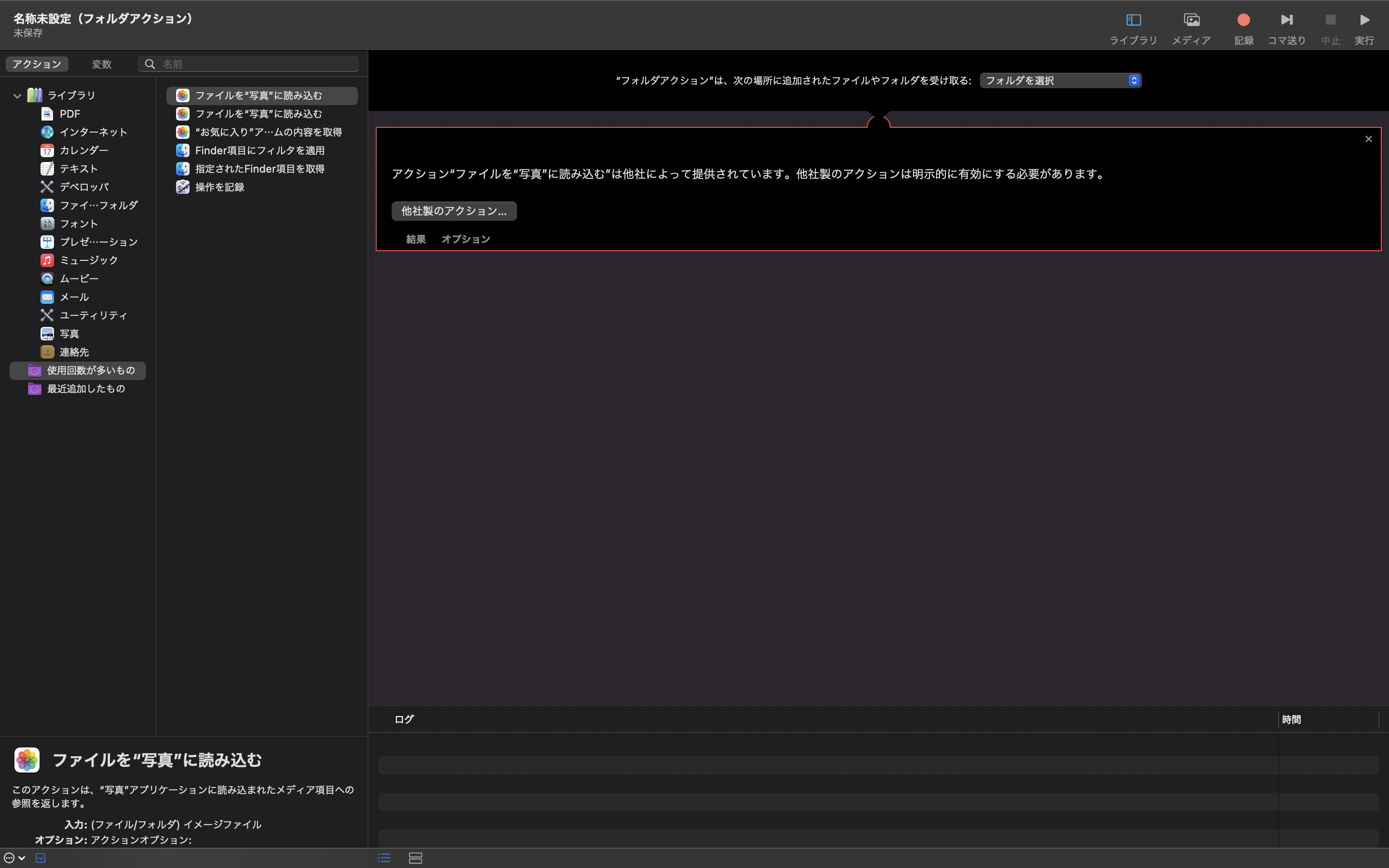 フォルダアクションより「ファイルを写真に読み込む」アクションを追加しようとした際、他社製のため不可能等の表示が出ました。