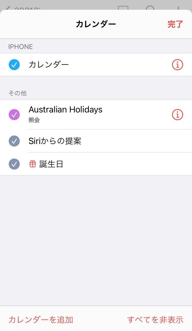 iPhone規定のカレンダーで日本の祝日を追加する方法について。