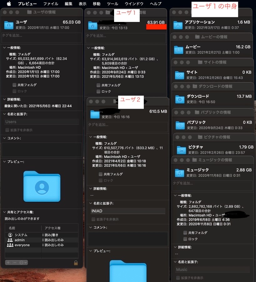 先程Macintoshの中身を見ていたら、ユーザ1(仮)の中身と情報が一致してないことに気づきました。