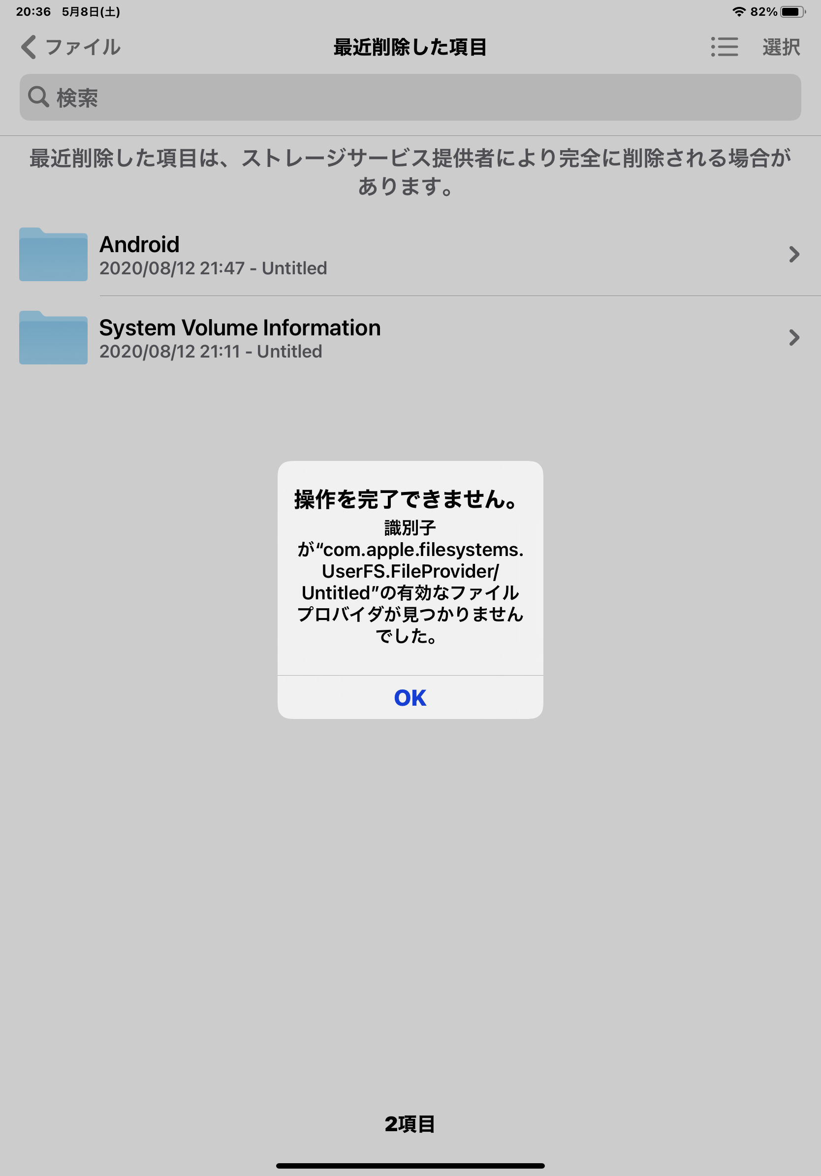ファイルアプリの「最近削除した項目」の中の特定のファイル(下写真参照)が削除できません。