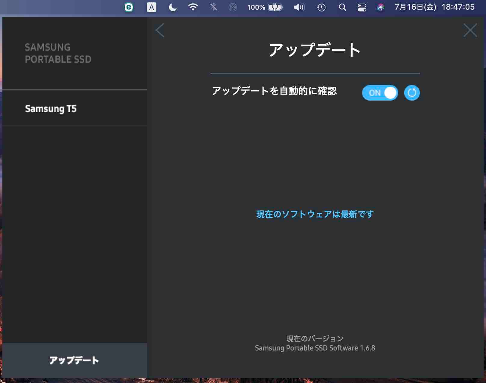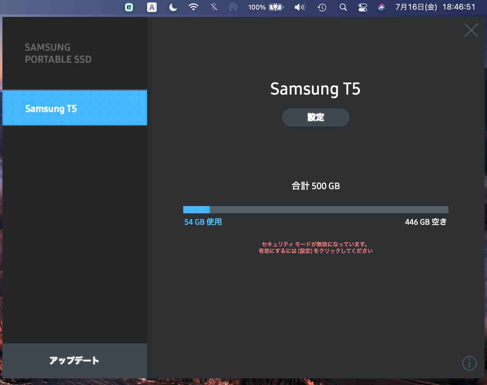 外付け起動ディスクにSAMSUNG T-5を使っています。