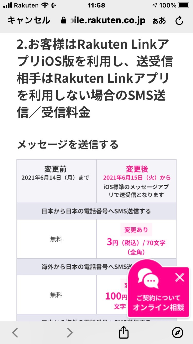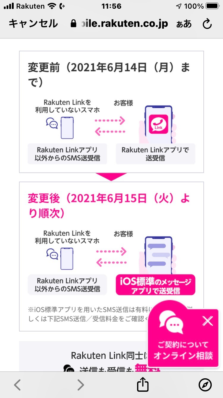 「楽天リンク」でした(笑) 先ほど、マイ楽天モバイル経由からアナウンスされた内容を確認。ご参考まで。@粕谷 明 さんよりいただいた回答経由で、アナウンス内容を画像キャプチャ添付させていただきました。iMessageのオフで送受信ができる場合があるんですね!なるほど、ありがとうございます。 my memo also https://selfsolve.apple.com/deregister-imessage/jp/ja