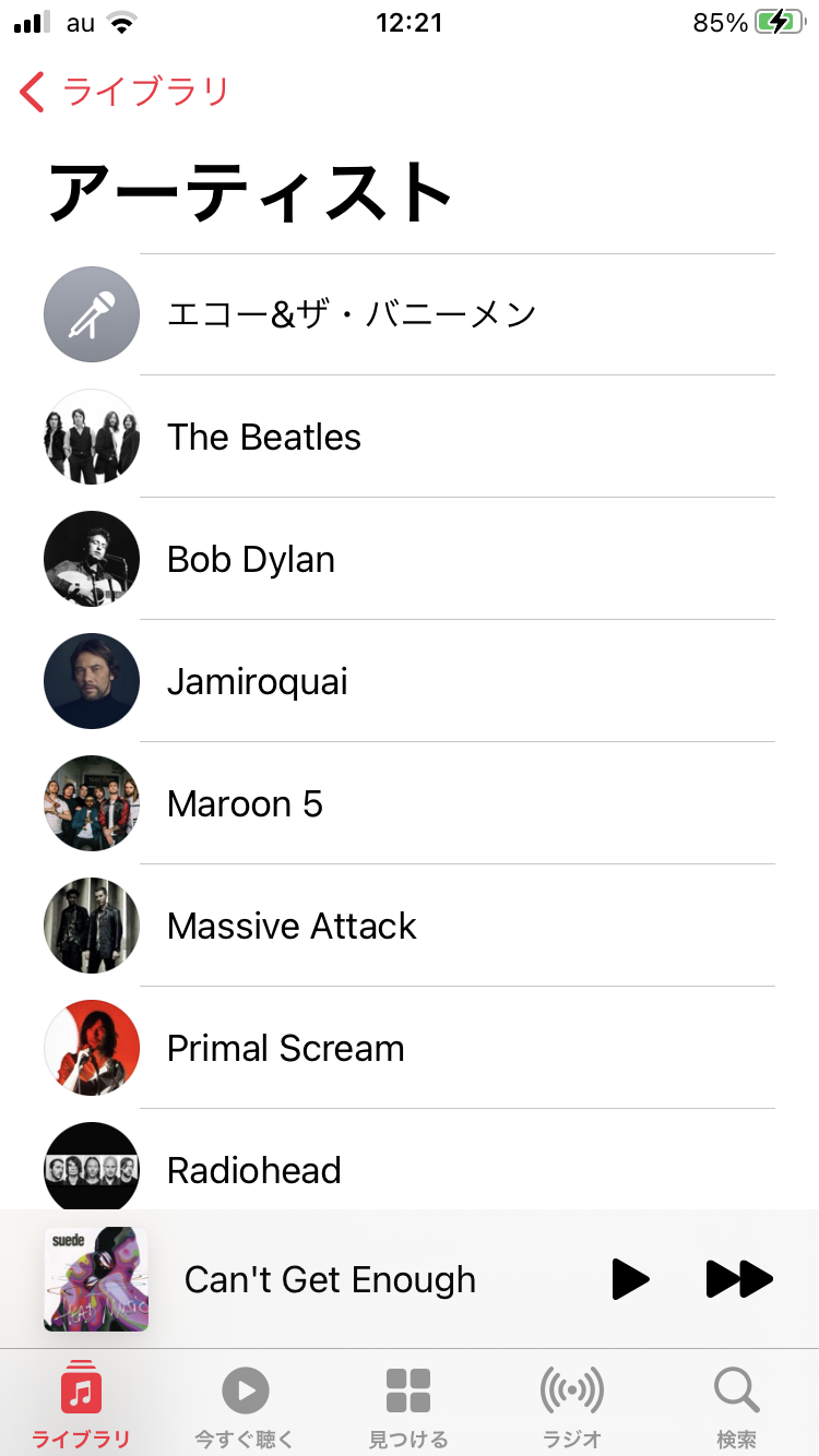 iPhone 8 のミュージックアプリのアーティスト表示に関しまして