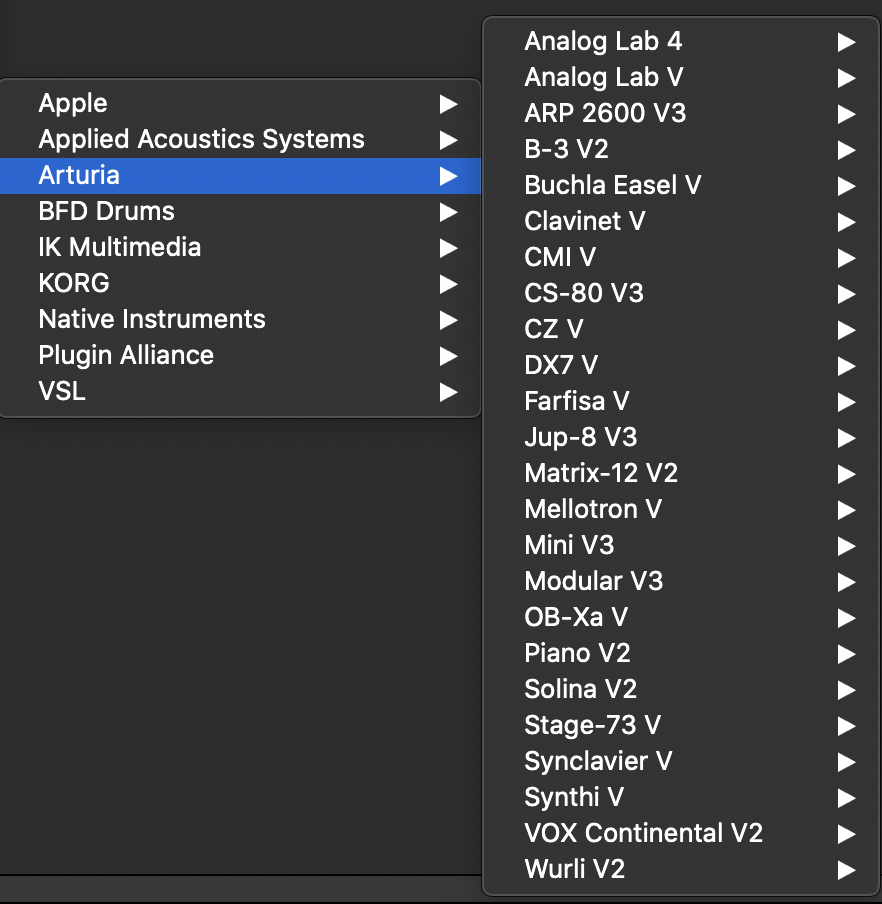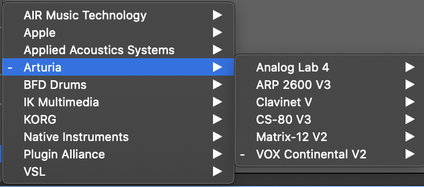 LogicProのプラグインマネージャーで表示されているが、プラグイン選択リストに表示されない。