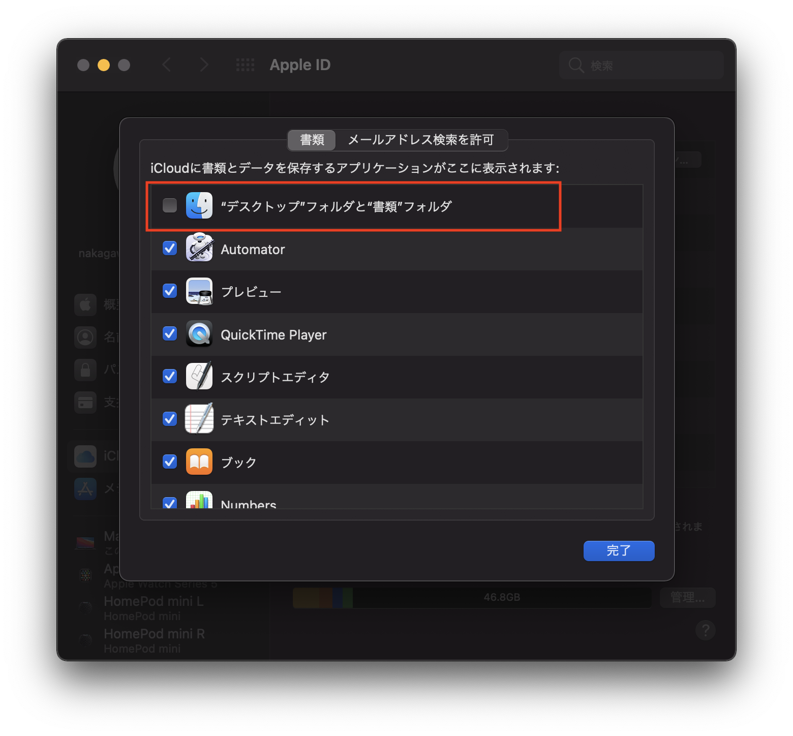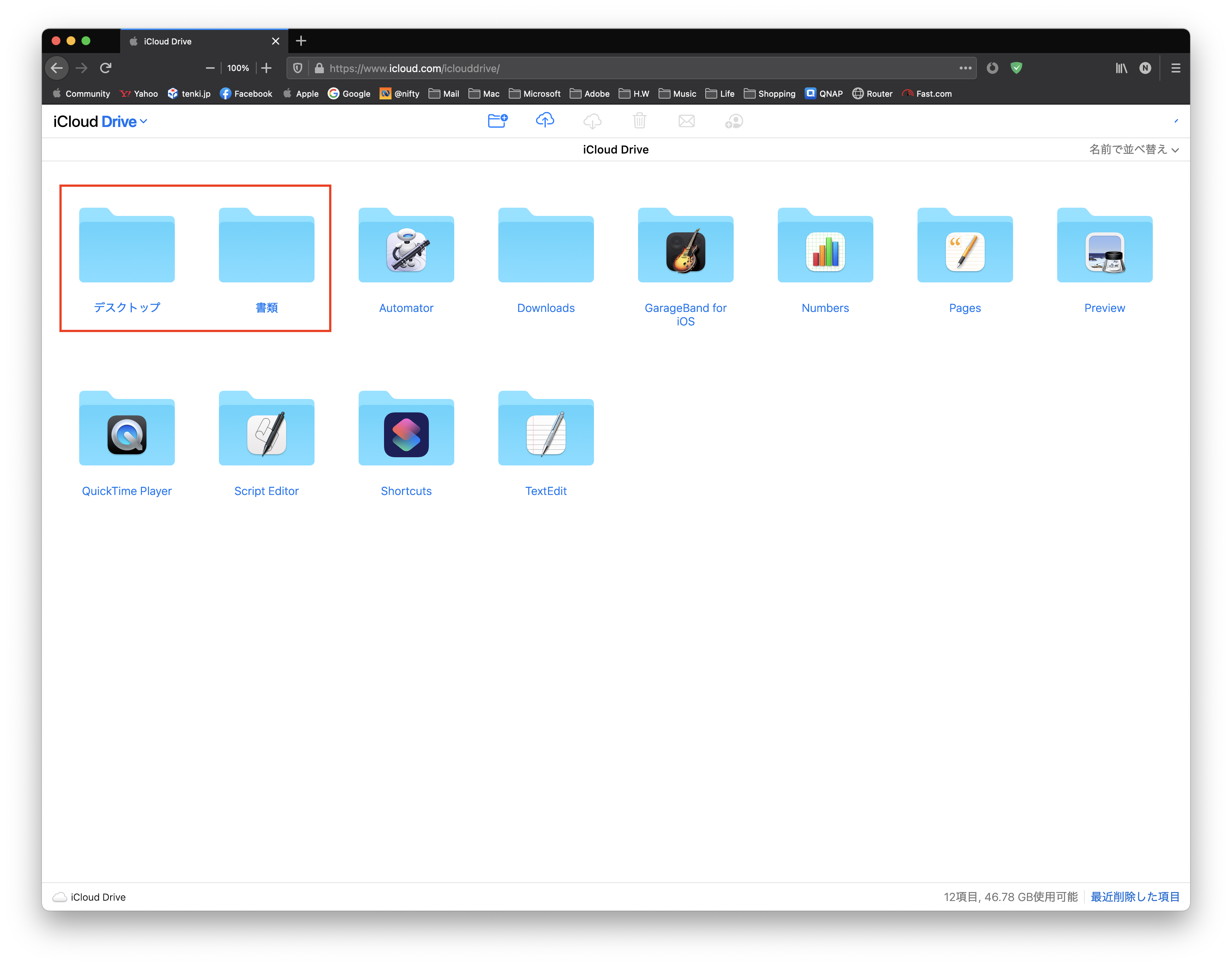 そして、Mac上の”デスクトップ”フォルダと”書類”フォルダの中身は、iCloud Drive上のフォルダから復元しました。
