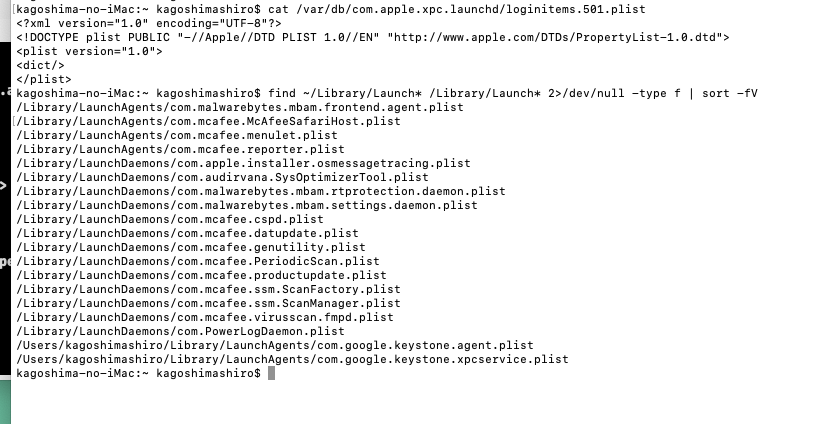 下記plistは、セーフモードでは起動しないので、犯人は2番目以降のどれかになります。(malwarebytesは無罪か?