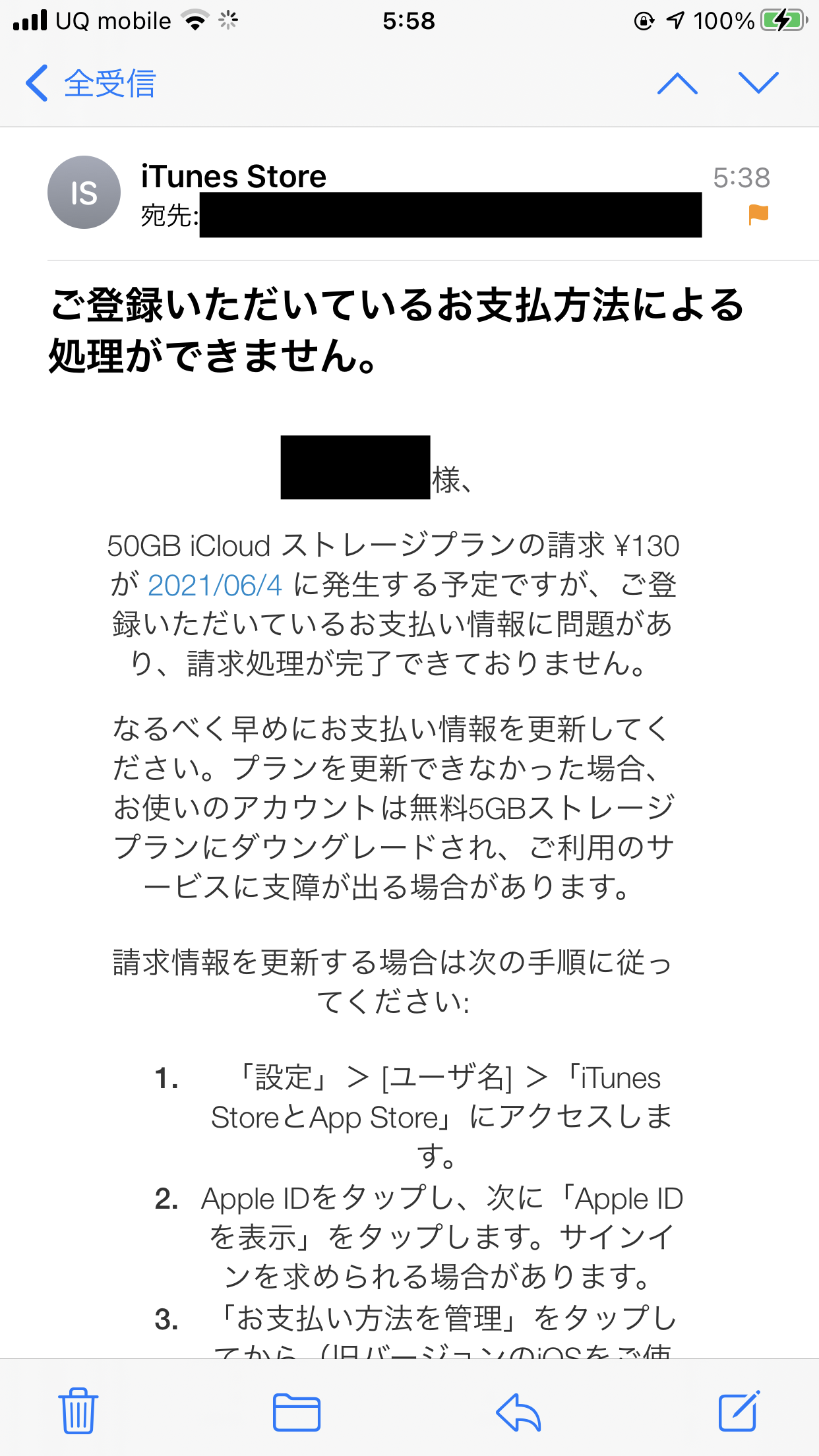 iCloudストレージプランの支払いが出来ていない時