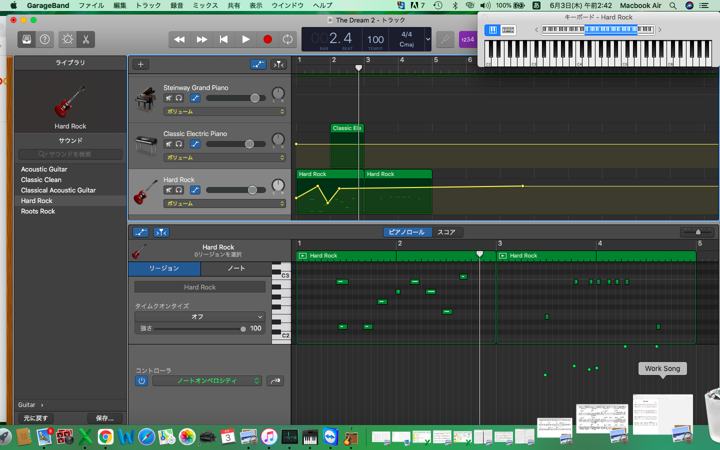 Grageband MIDIキーボードからエレキギター系の トラックの音が出ない