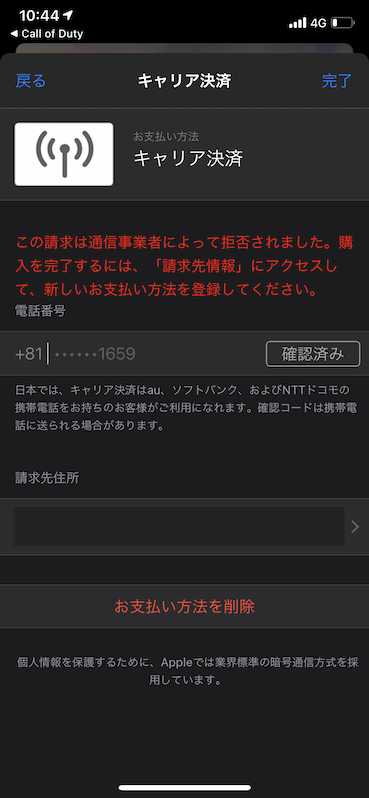 キャリア決済の限度額に達したか未払いが発生しているのでは?