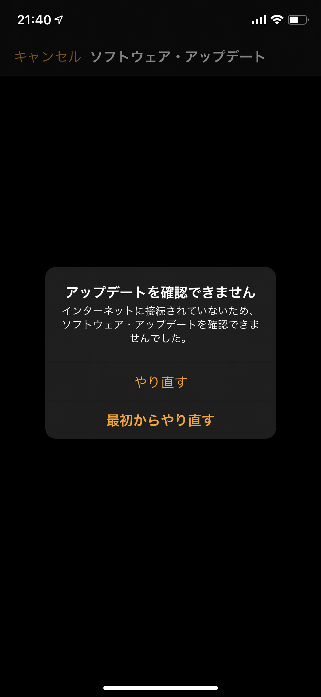 インターネットに接続されていないため、ソフトウェア・アップデートできないと表示される。