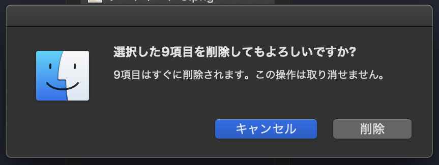 Finderにて不要なファイルを削除するとき、ファイルを選択してからキーボードのcommand+deleteで、いつも削除を行っています。