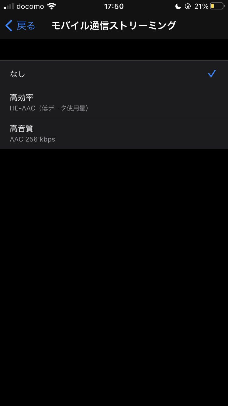 「オーディオの品質」の中に「モバイル通信ストリーミング」という項目がありますよ。