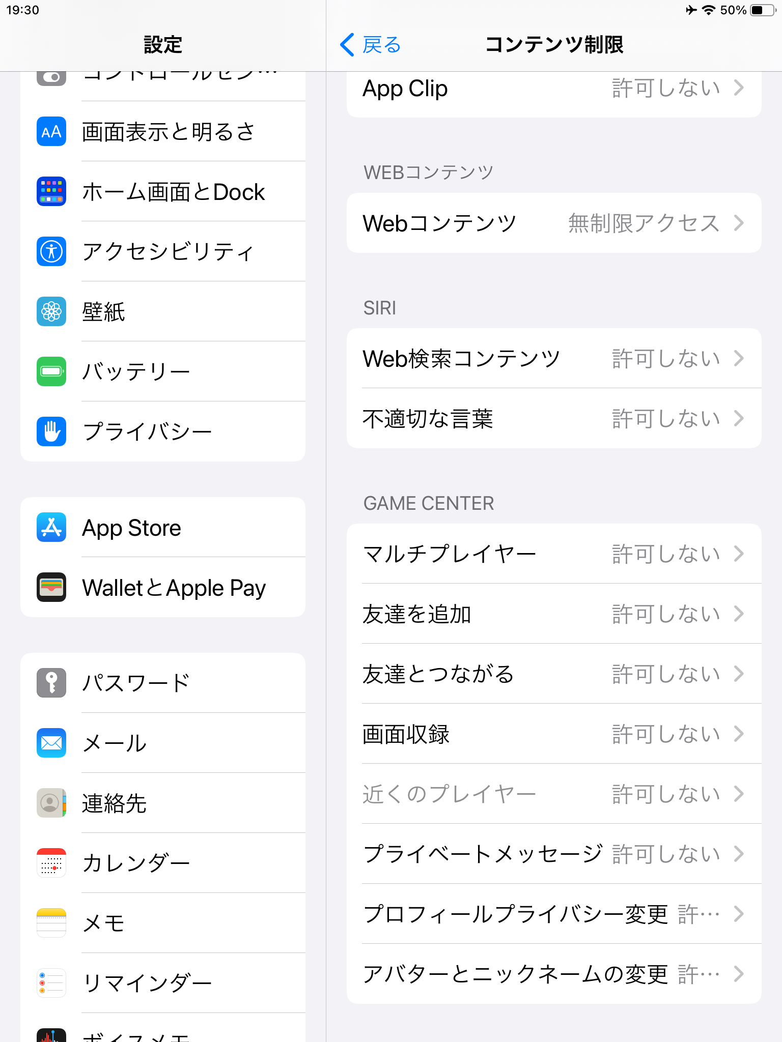 昨日制限をかけるところ自体が設定出来ないので困っています