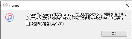 iTunesにある69GB分の音楽を容量128GBのiPhone SEに同期しようとしたところ以下のような警告が出て同期されませんでした。どうも前のiPhone6の容量(64GB)と誤認してるような気がするのですがどうすれば同期できるのでしょうか。