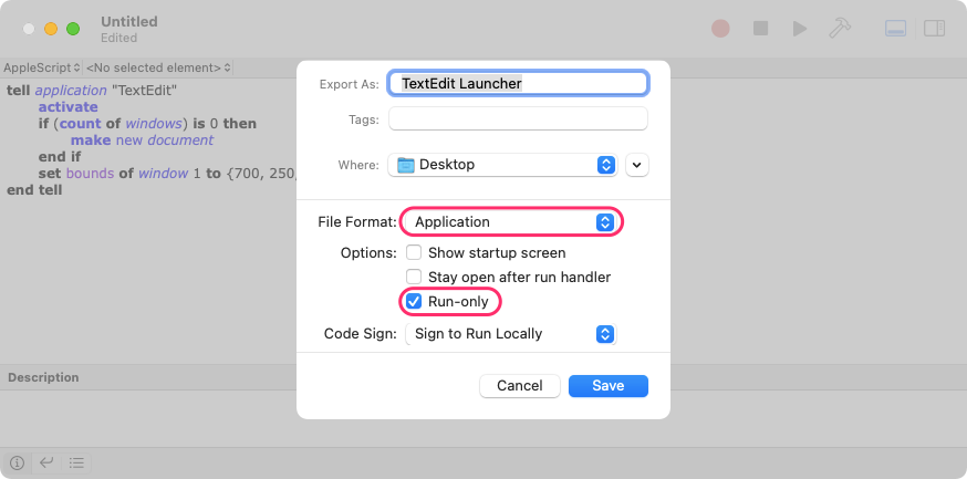 ところで、Automatorで書くと一旦デフォルトのウインドウサイズで立ち上がってからリサイズされますが、Script Editorで書けば指定したウインドウサイズで起動するので良い感じです。(これはもしかすると、私のマシンの性能が悪いからかもしれませんが...