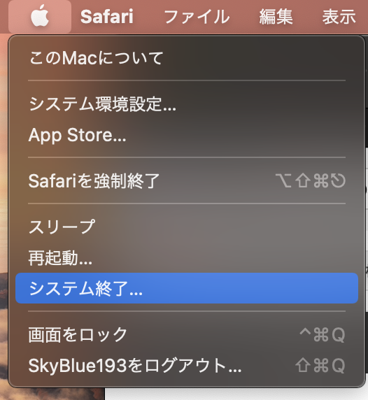 下の画像などのような「システム終了」はしてないのですよね?