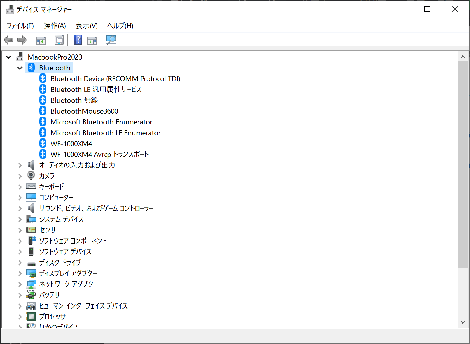 Bootcamp環境下のWindows 10 21H1でSONYの「WF-1000XM4」がヘッドセットして認識されていません。(イヤホンとしては認識されます)