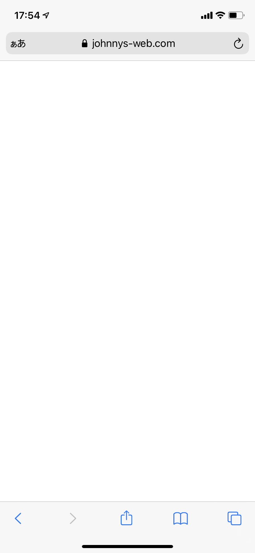 ジャニーズweb、ジャニーズFC、ISLANDTV等のログインの部分をタップすると画像のように真っ白の画面になってしまいます。Safari、iPhone共に再起動や、iPhoneの最新版アップデート、Safariのデータ削除等出来ることは全てやって見たのですが、一向に治りません、、