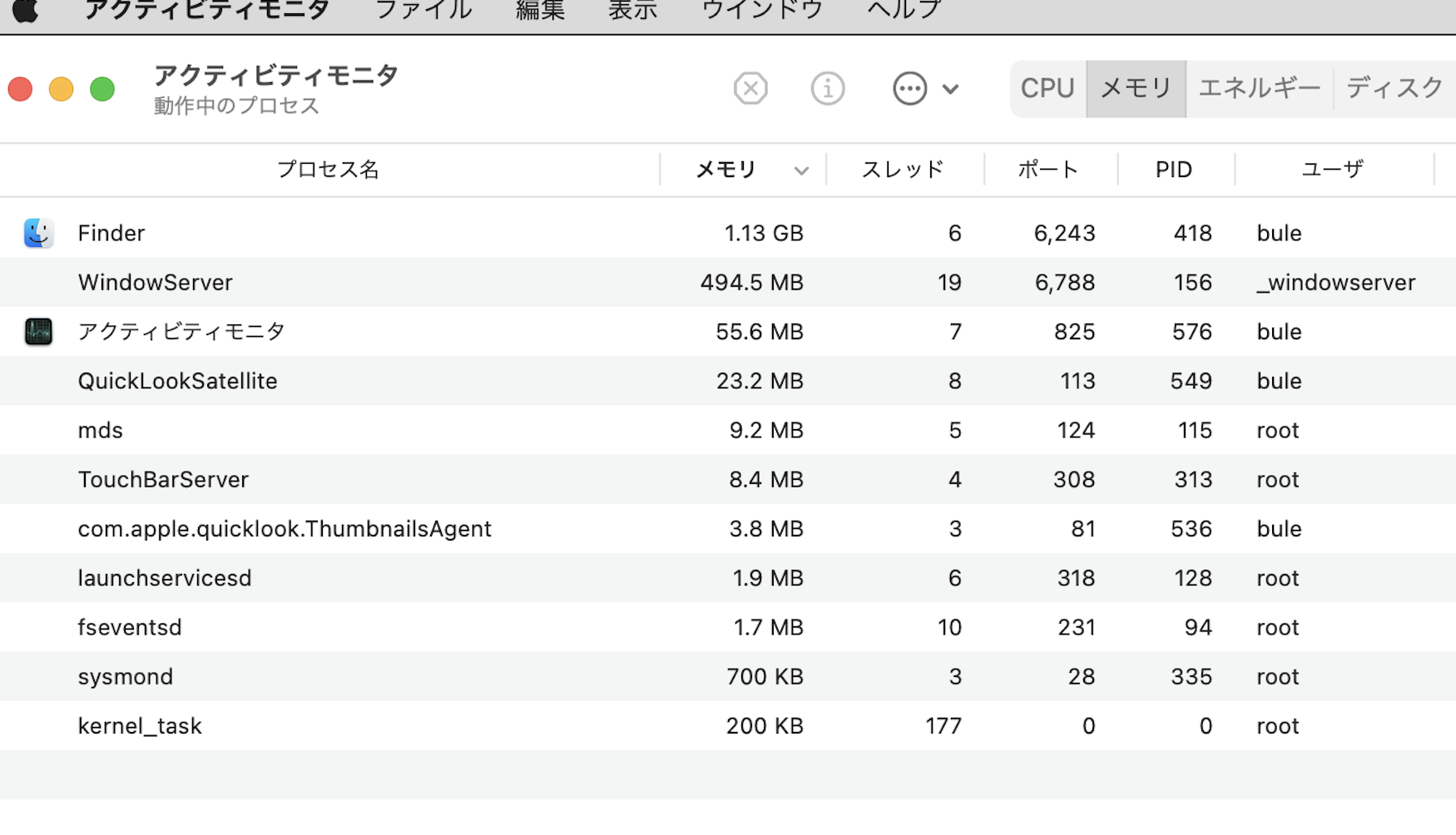 同様にアクティビティモニタやクイックタイムプレイヤーを何度かトライして立ち上げてみると