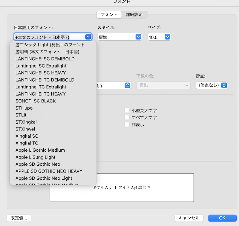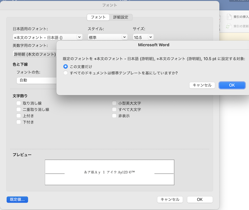 改行するたびにフォントがMS明朝から違う(游ゴシック?)になってしまいます。