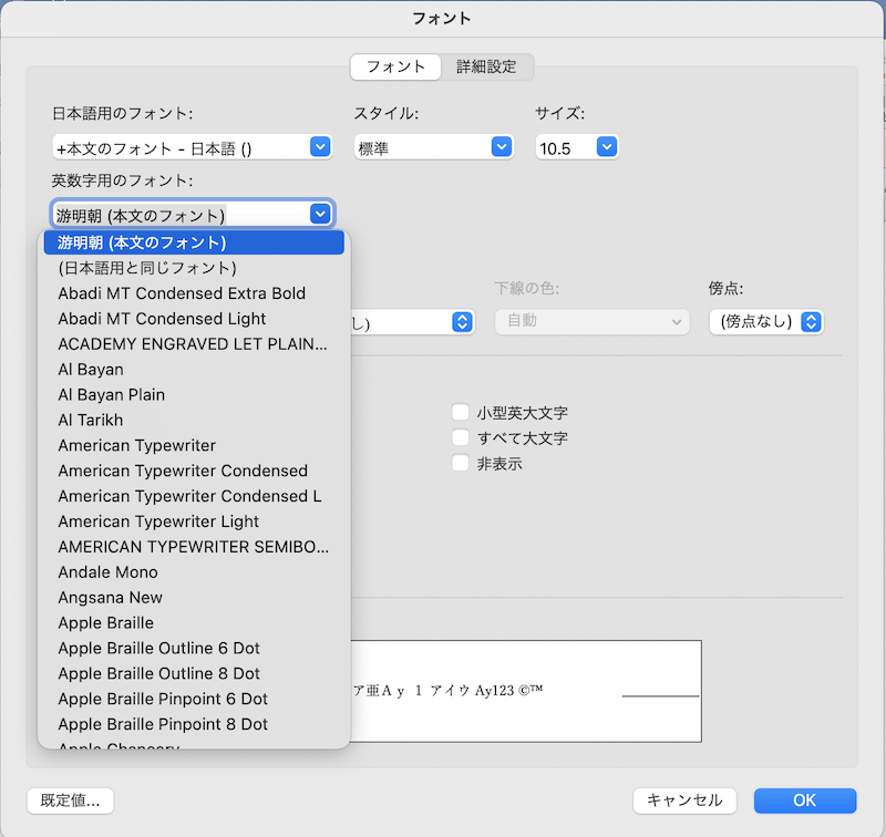 游ゴシックや游明朝がメインのテーマのフォントになっていました。
