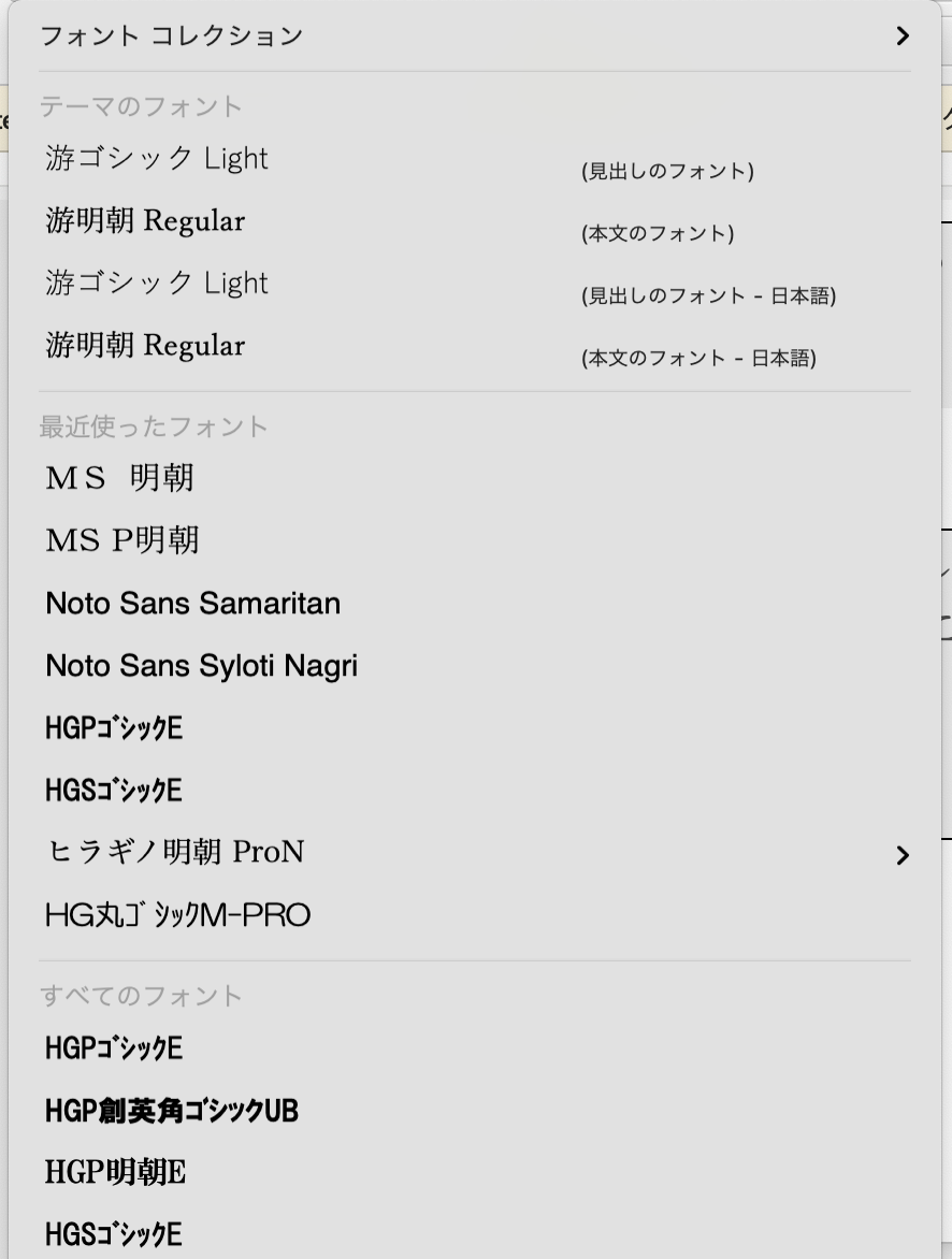 游ゴシックや游明朝がメインのテーマのフォントになっていました。