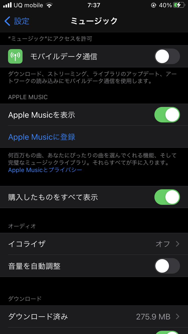 iOS14.6以降には、ロスレスオーディオの切り替えが、設定〉ミュージック〉オーディオの品質 の中にあるそうですが、私のiPhoneには「オーディオの品質」の項目がありません。