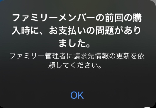 ②自分はファミリー共有をしていて、 ゲームアプリのアップデートをしようとしたら画像の様な物が出てきてしまいました。