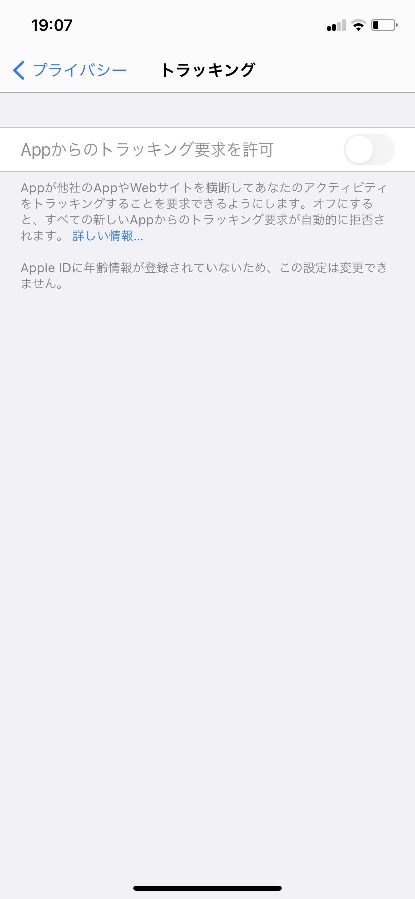 ● 場合によっては、例えば以下に該当する場合等は、「App からのトラッキング要求を許可」設定が無効になります。