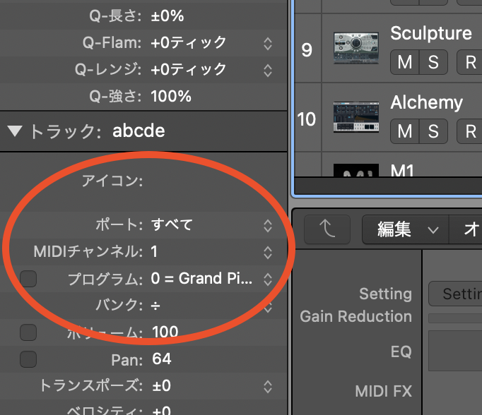 Logicの外部MIDIトラックでデータを作って再生した時,「ポート」や「MIDIチャンネル」を変更しながら,どうなるか試してみてください。