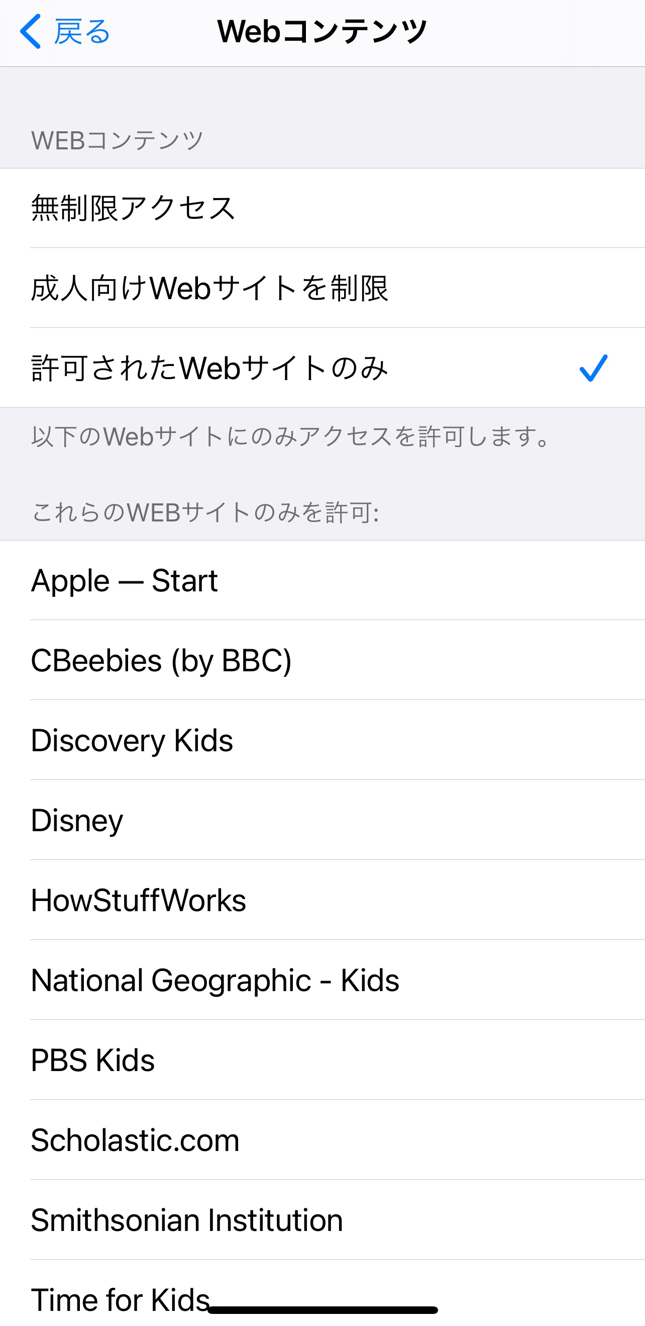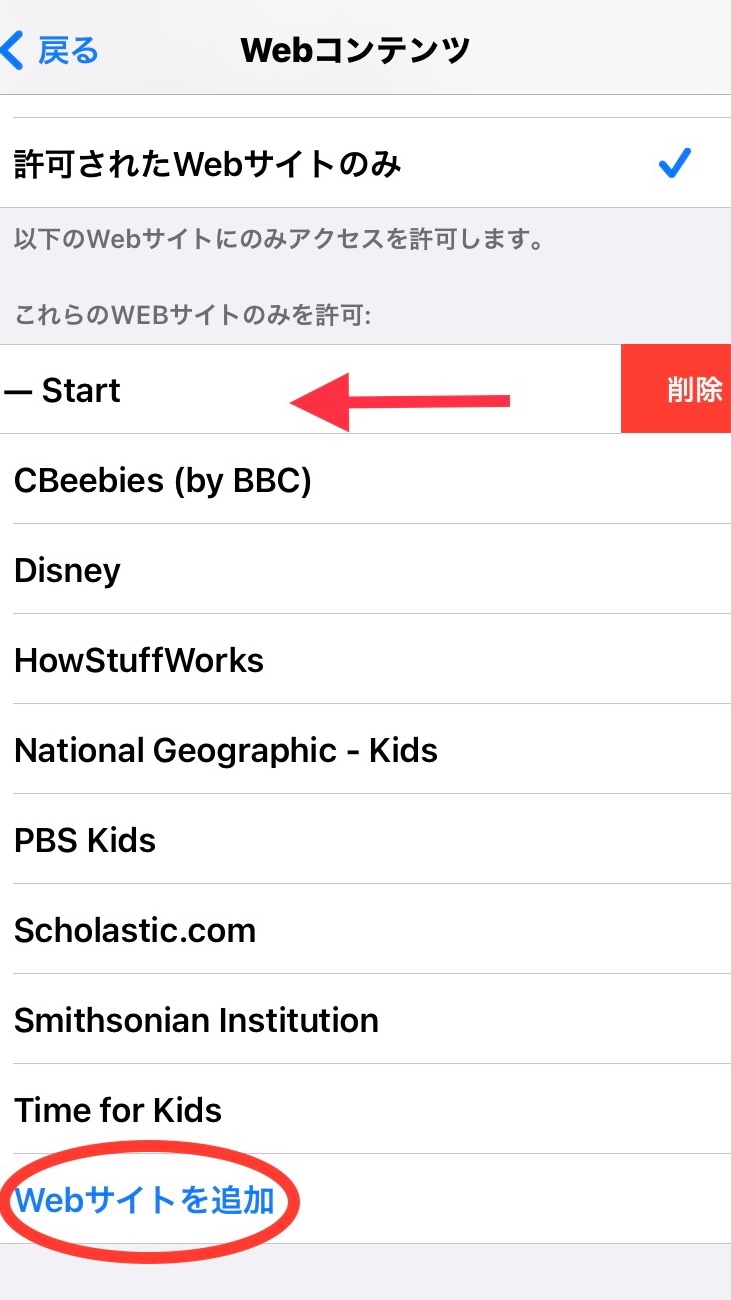 スクリーンタイムのコンテンツ制限で許可したサイトを変更、削除するにはどうすればいいですか?
