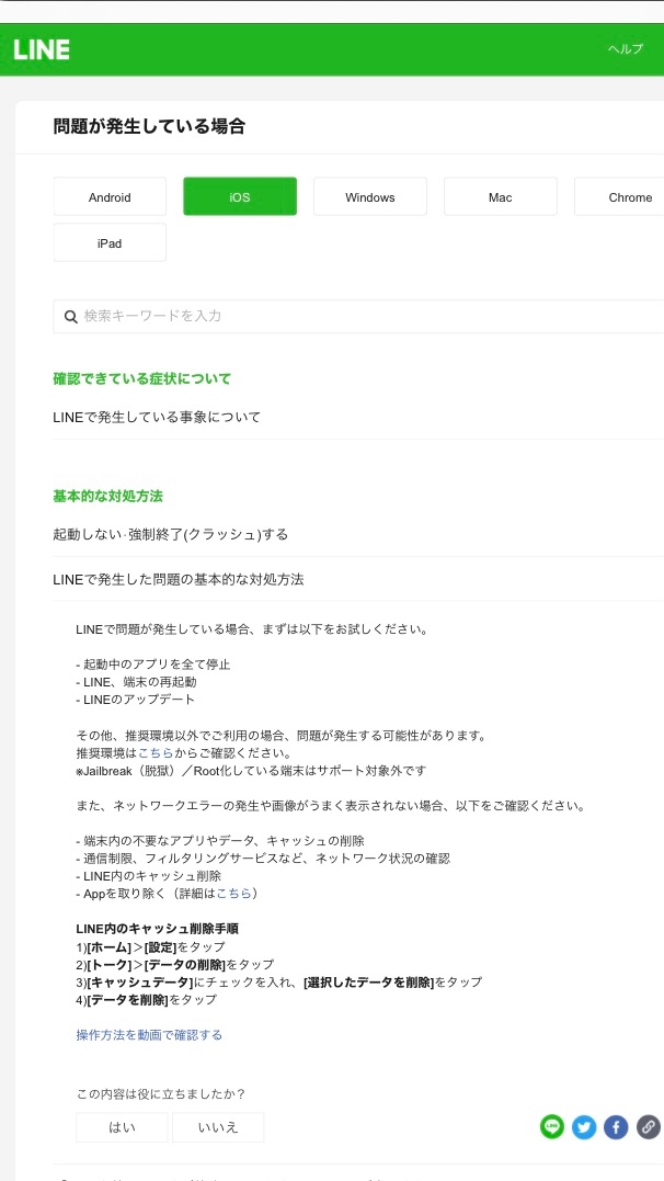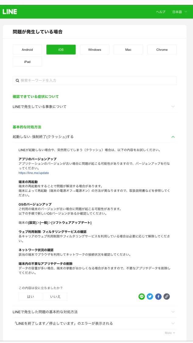 上記の対策を行いましたが、症状は治らずLINEアプリを開くことはできませんでした。