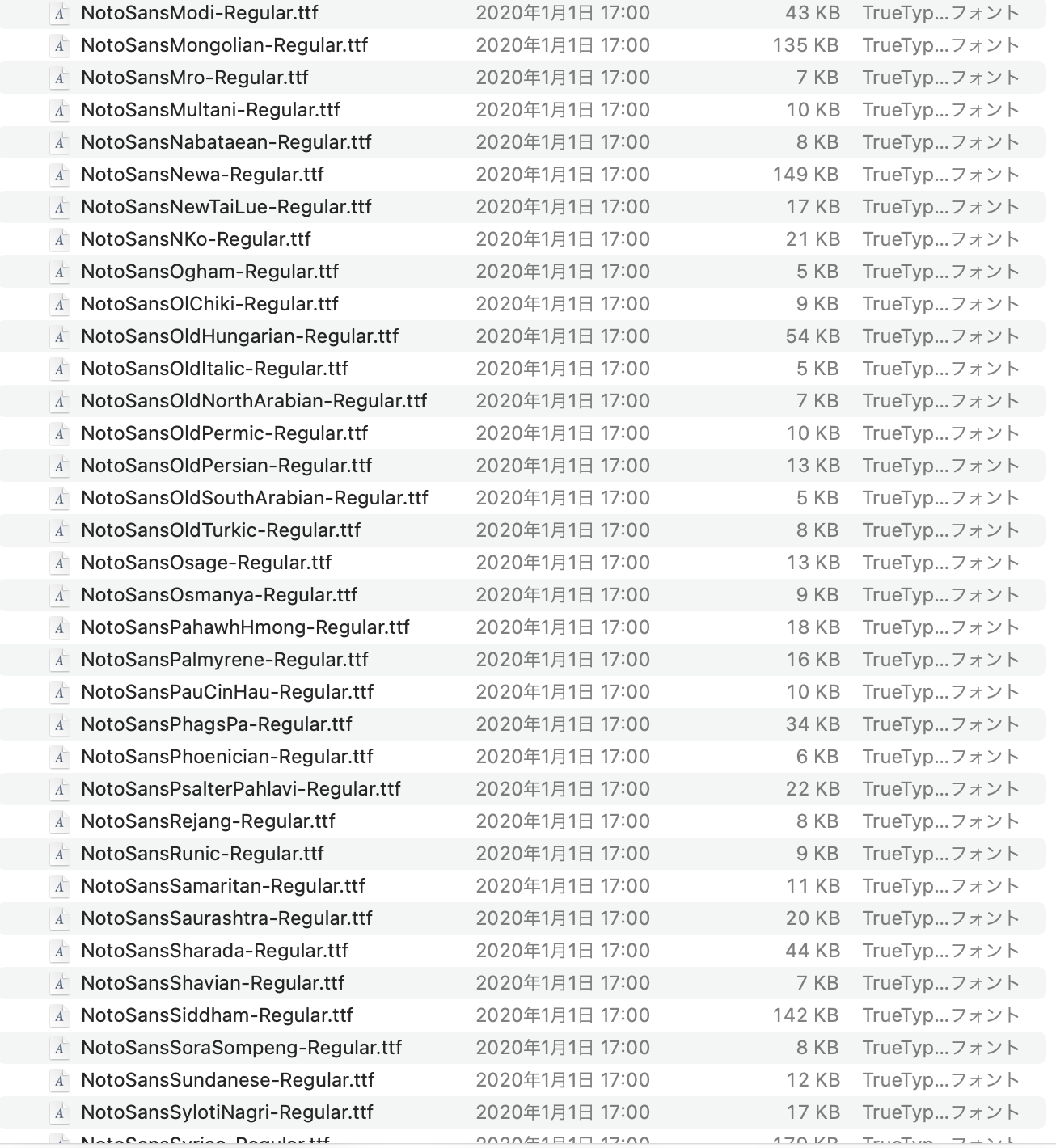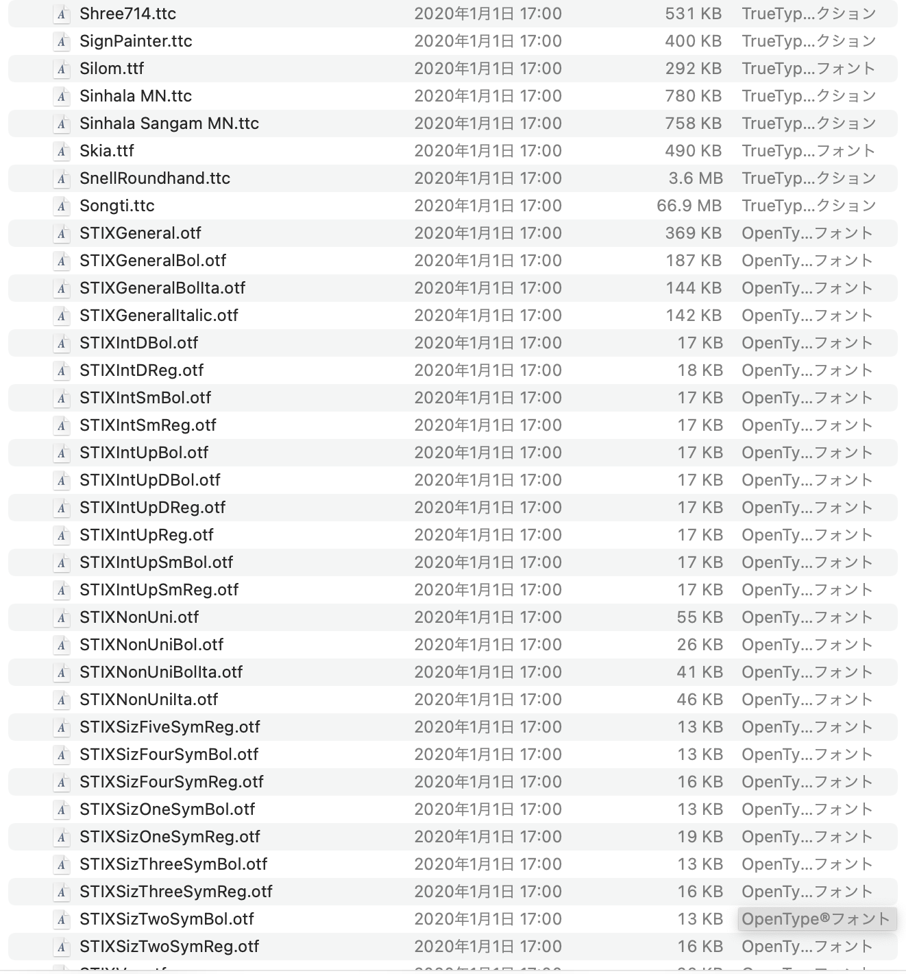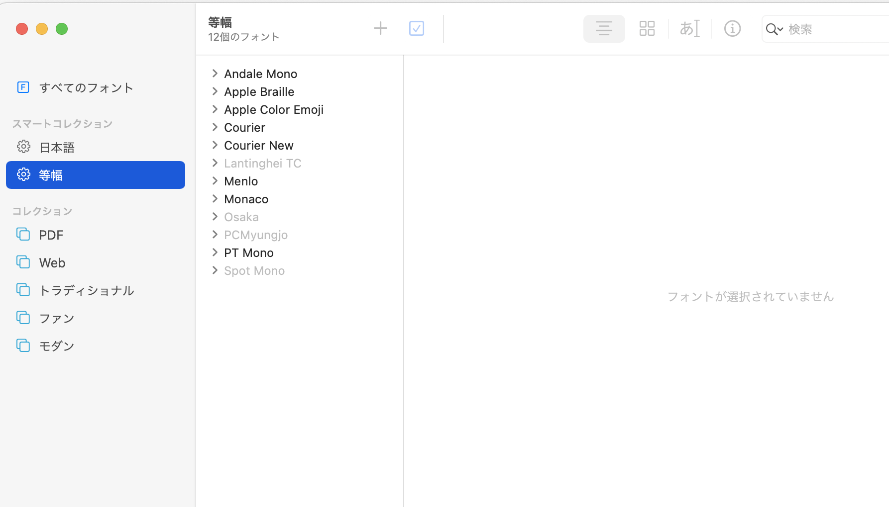 「すべてのフォント」を選択して、その中からグレーアウトしているOsakaを選択すると