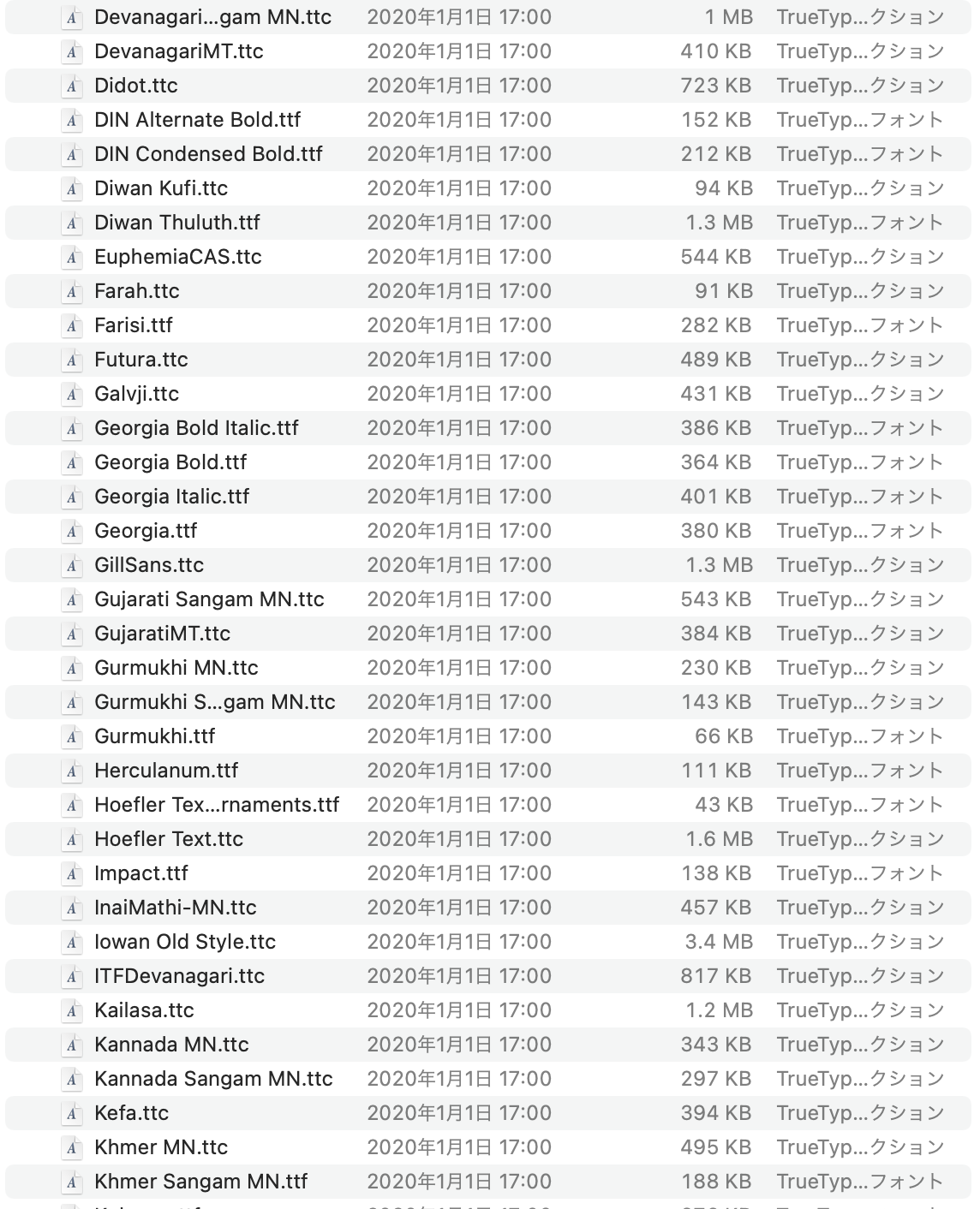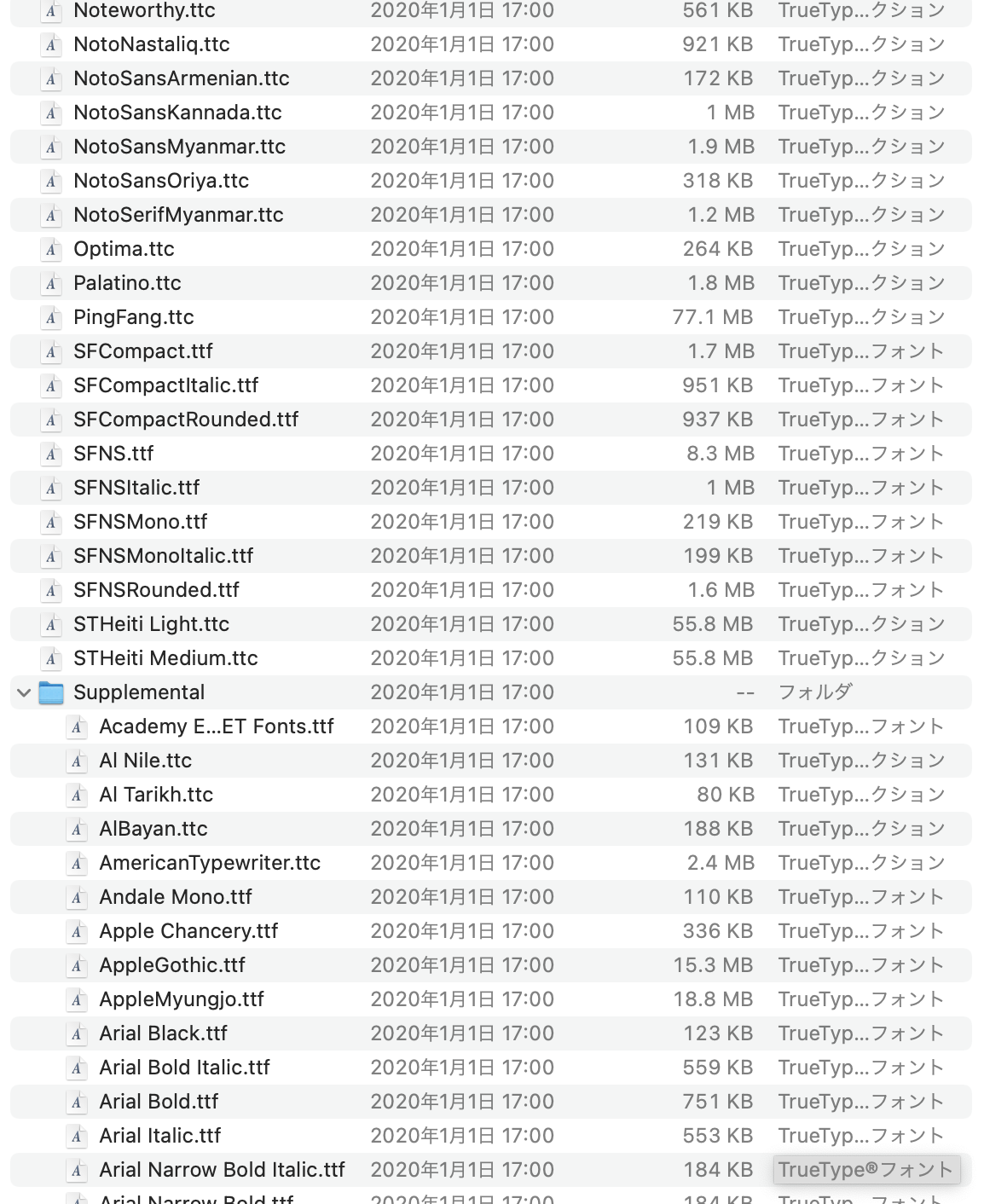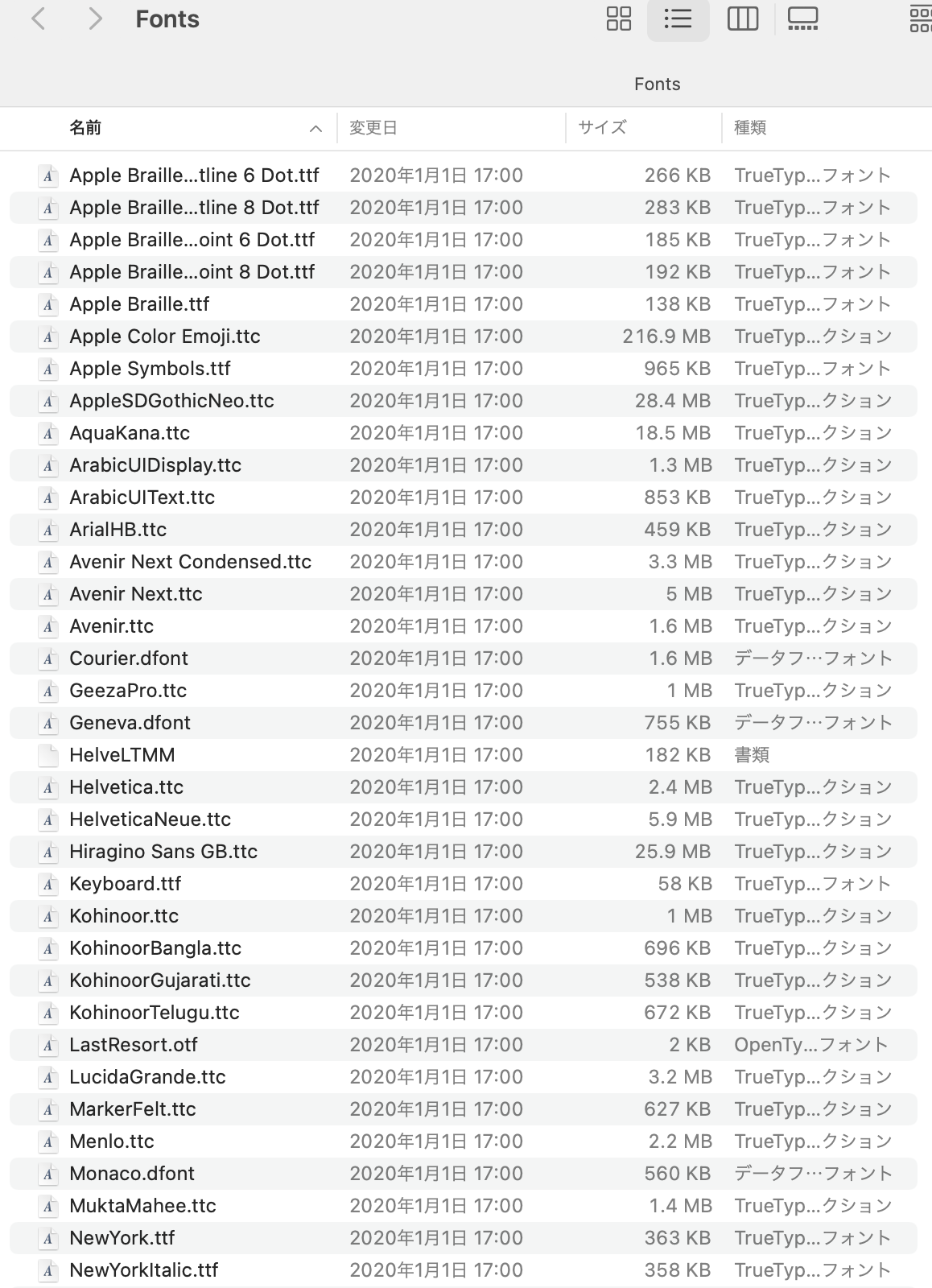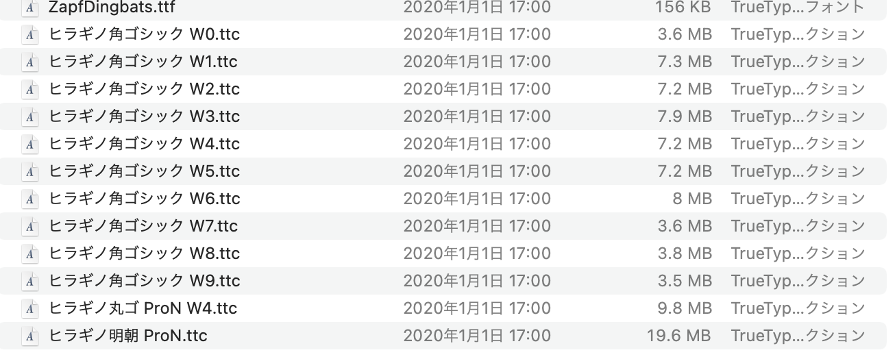 Macintosh HD>システム>ライブラリ>Fonts