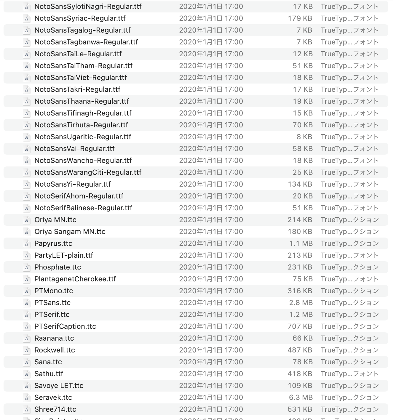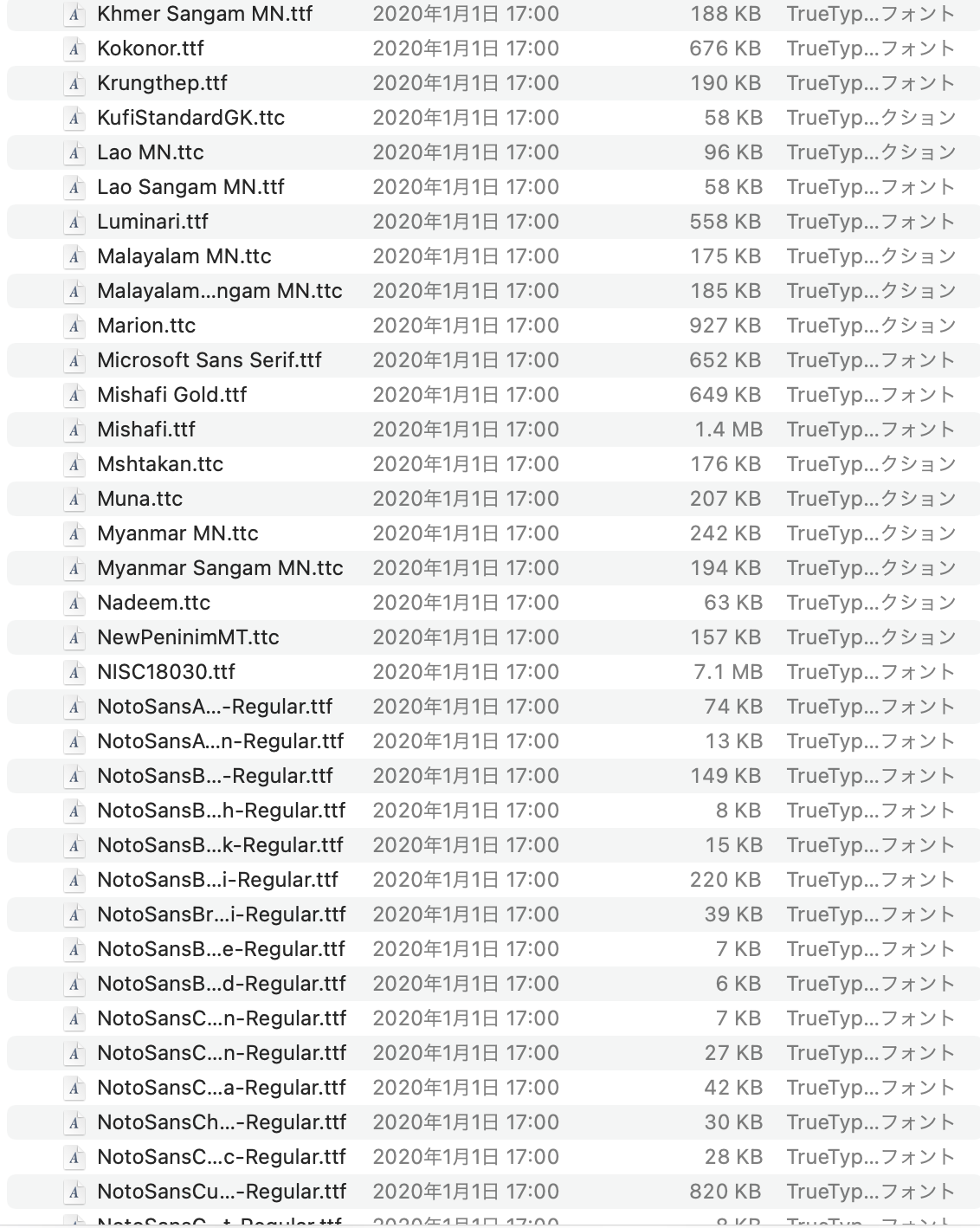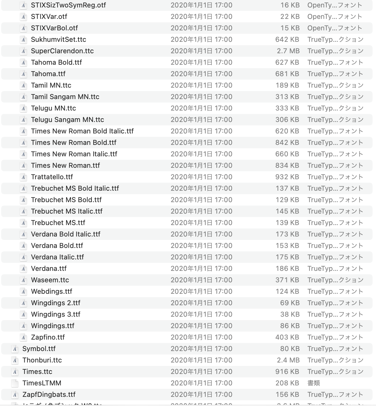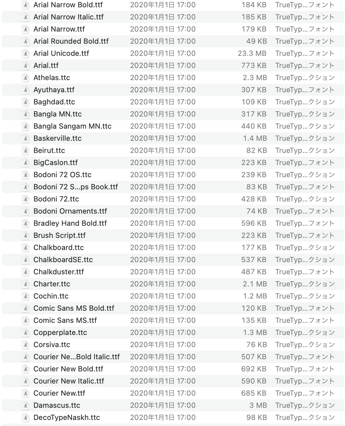 Macintosh HD>システム>ライブラリ>Fonts