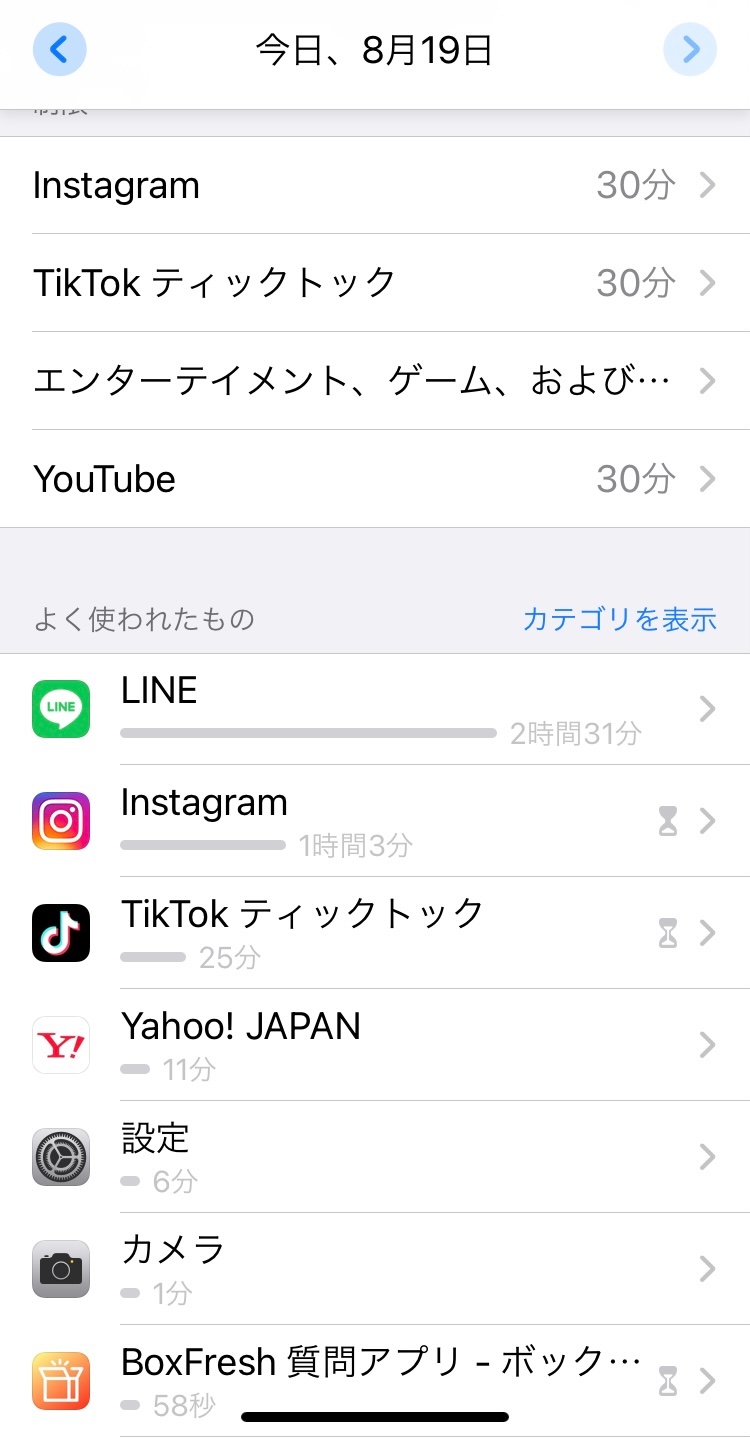 試しに “Webサイトデータを含める” をオンにして、SafariからInstagramを閲覧しているような形跡が見つかれば、新たにそれについても制限をかけてみるというのはどうでしょう?